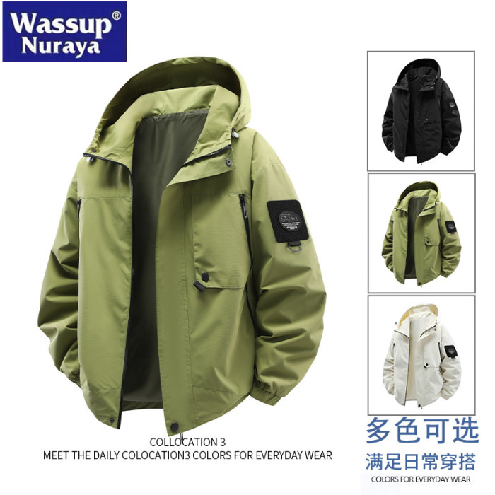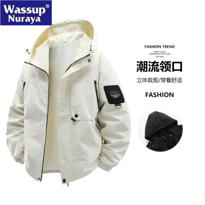WASSUP Nuraya潮牌沖鋒衣男春秋2025年新款寬松防水連帽夾克外套