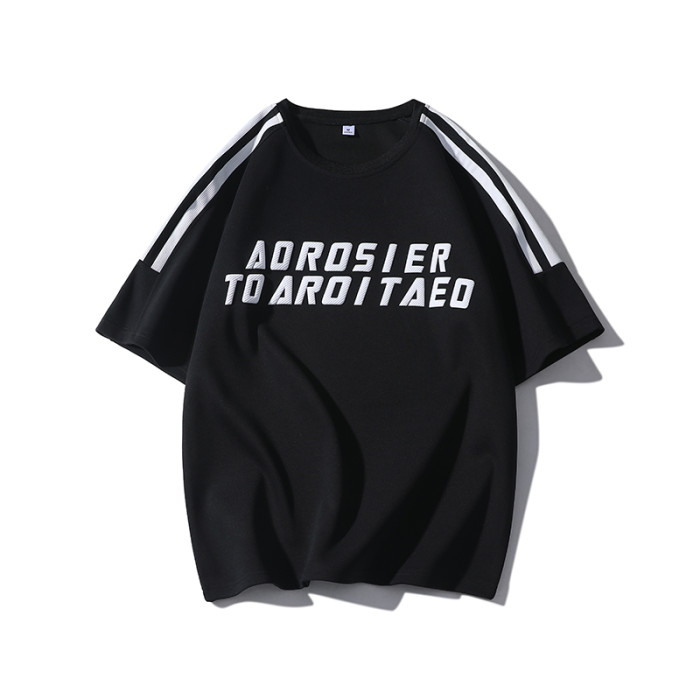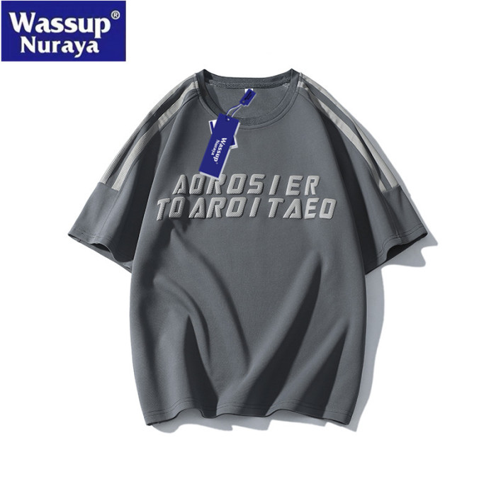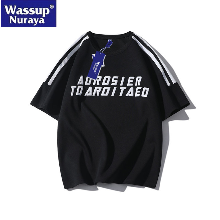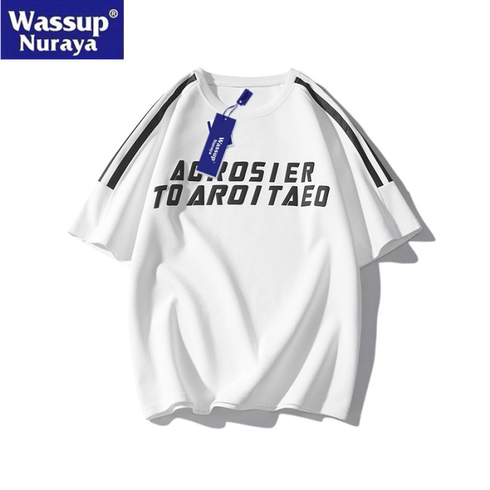 WASSUP Nuraya潮牌字母印花條紋短袖T恤男夏季薄休閒寬松大碼上衣