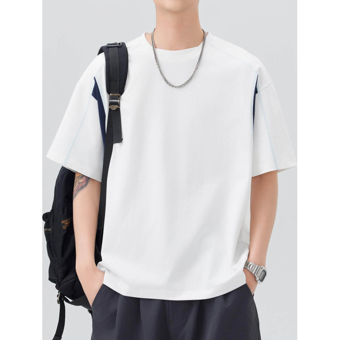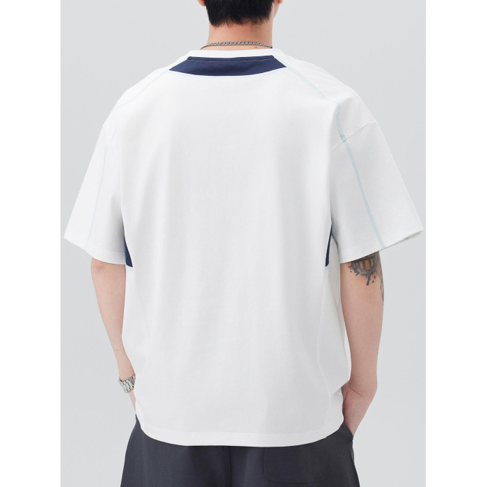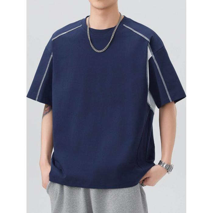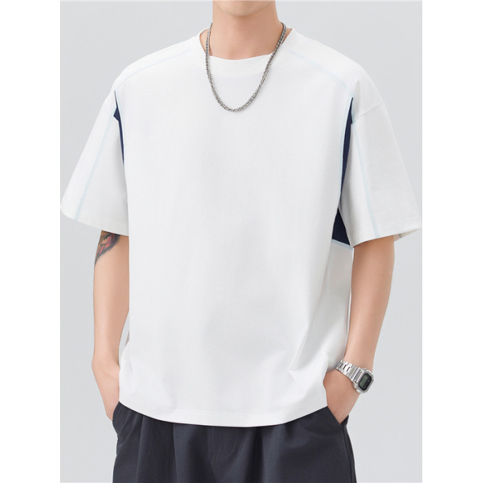 2025夏季復古索羅娜速乾短袖t恤男潮牌寬松拼接撞色冰感半袖上衣
