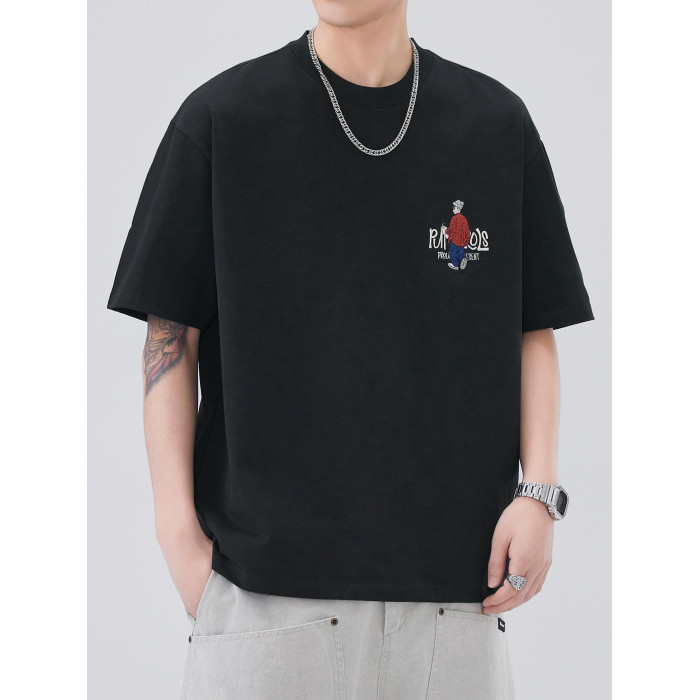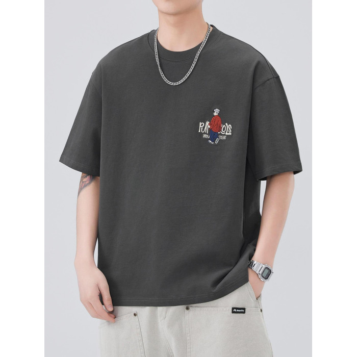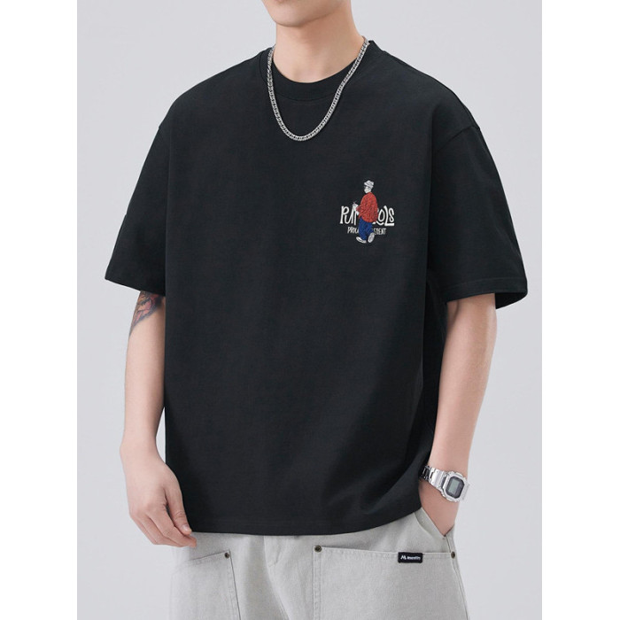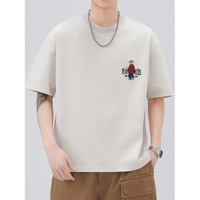 重磅刺綉印花短袖t恤薄款男夏季新款設計感休閒百搭舒適透氣體恤