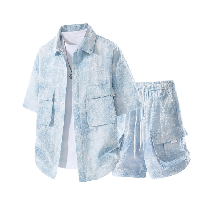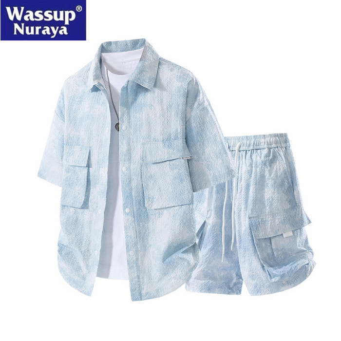 WASSUP Nuraya潮牌冰絲紥染襯衫一整套夏速乾短袖短褲休閒套裝男