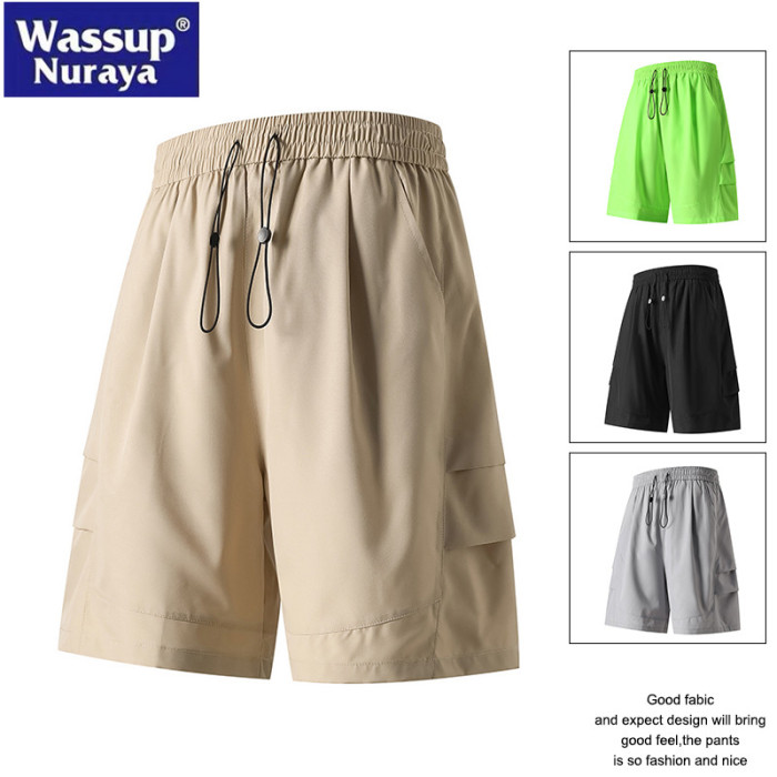 WASSUP Nuraya潮牌涼感繖兵短褲男夏季純色工裝五分褲子透氣中褲