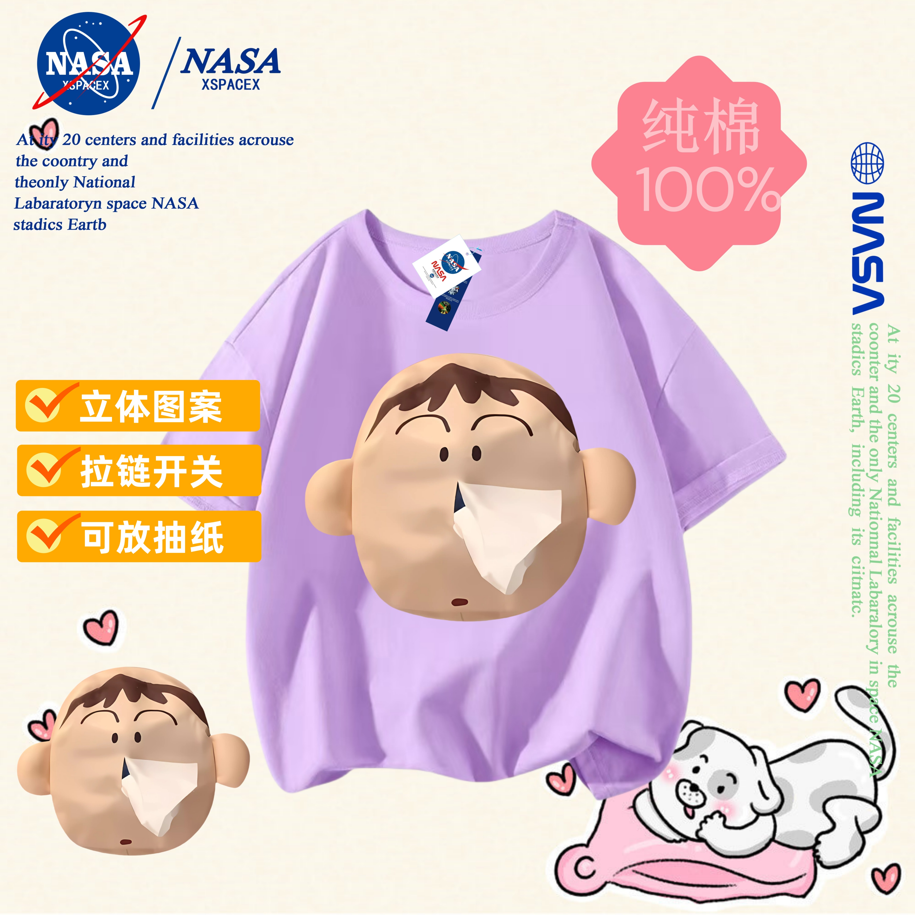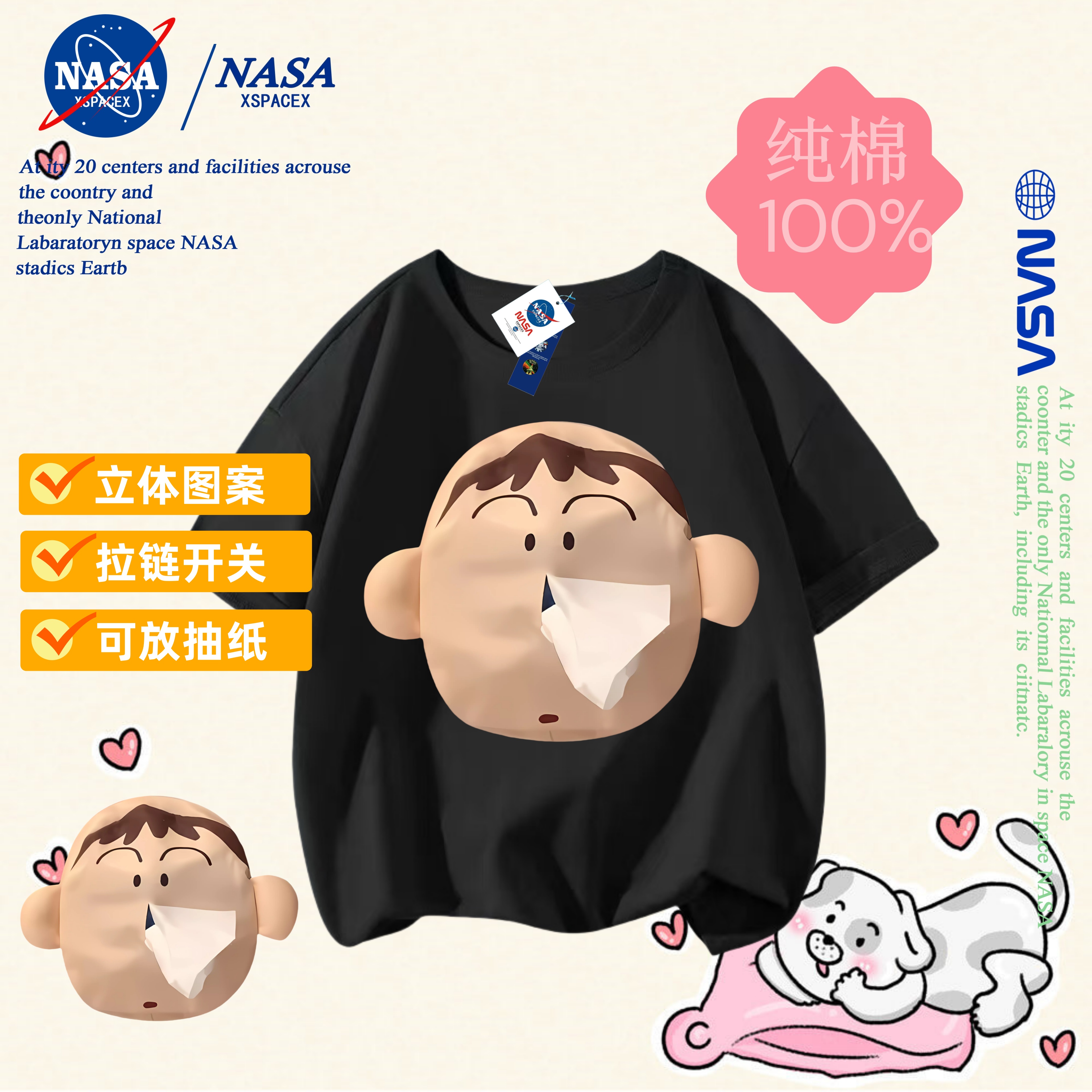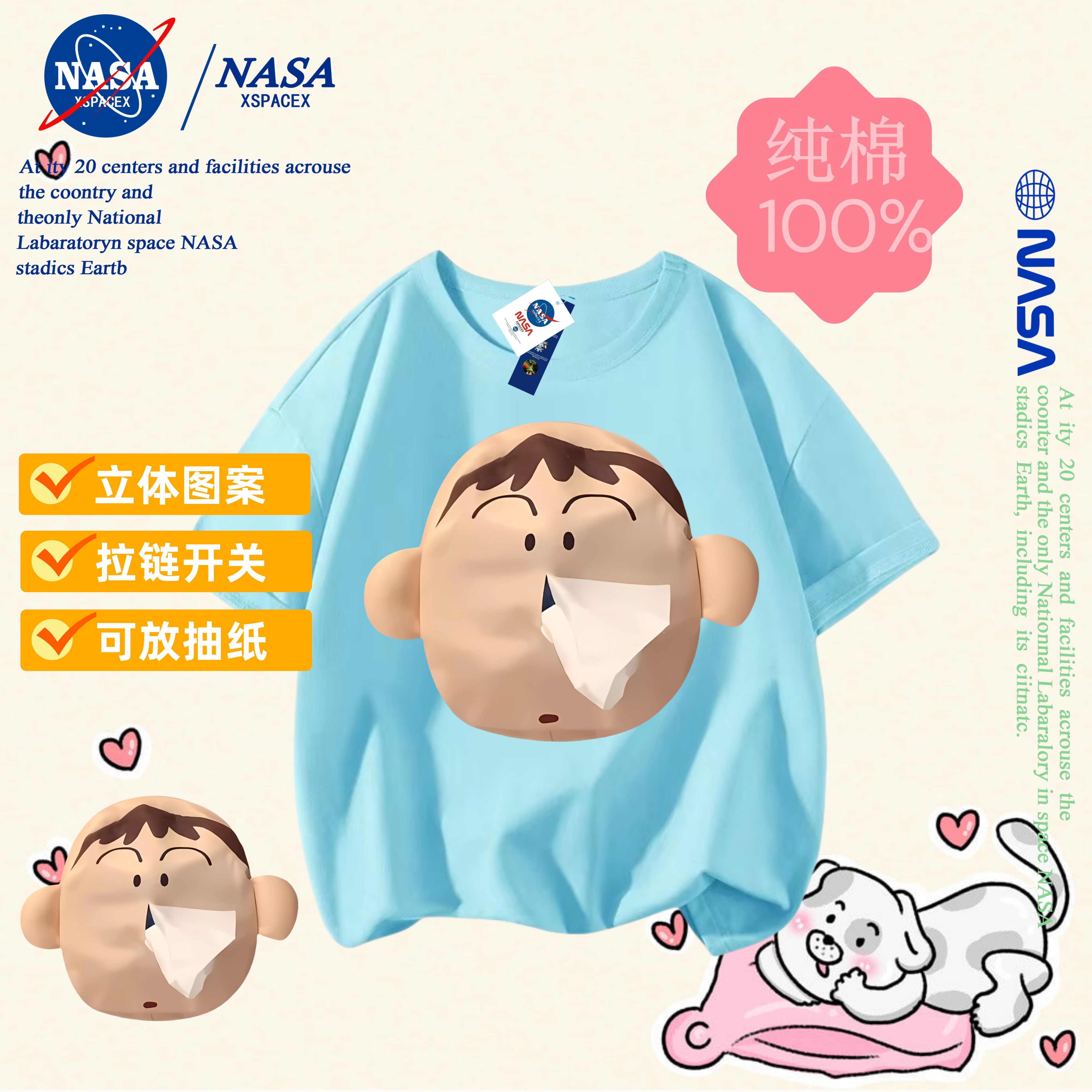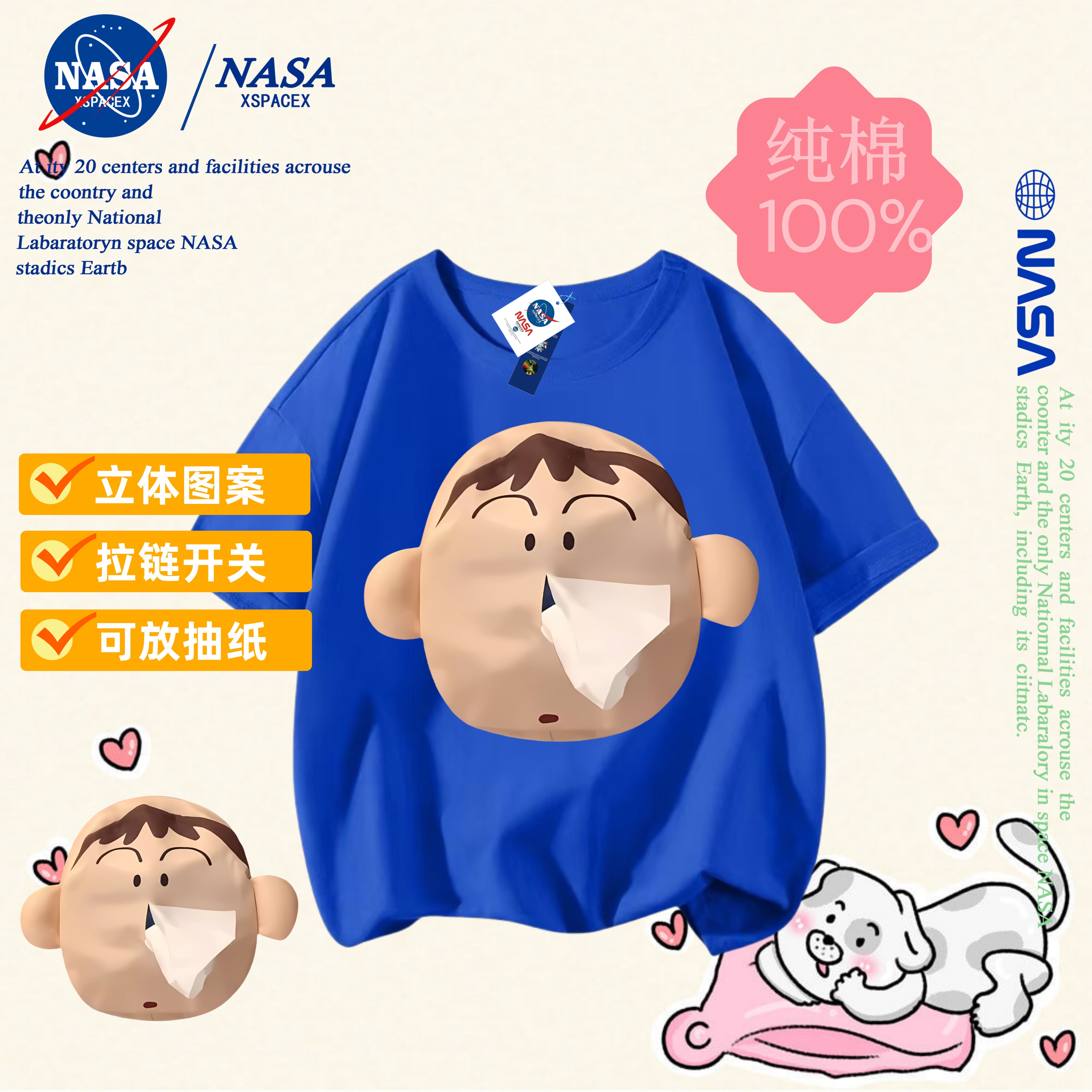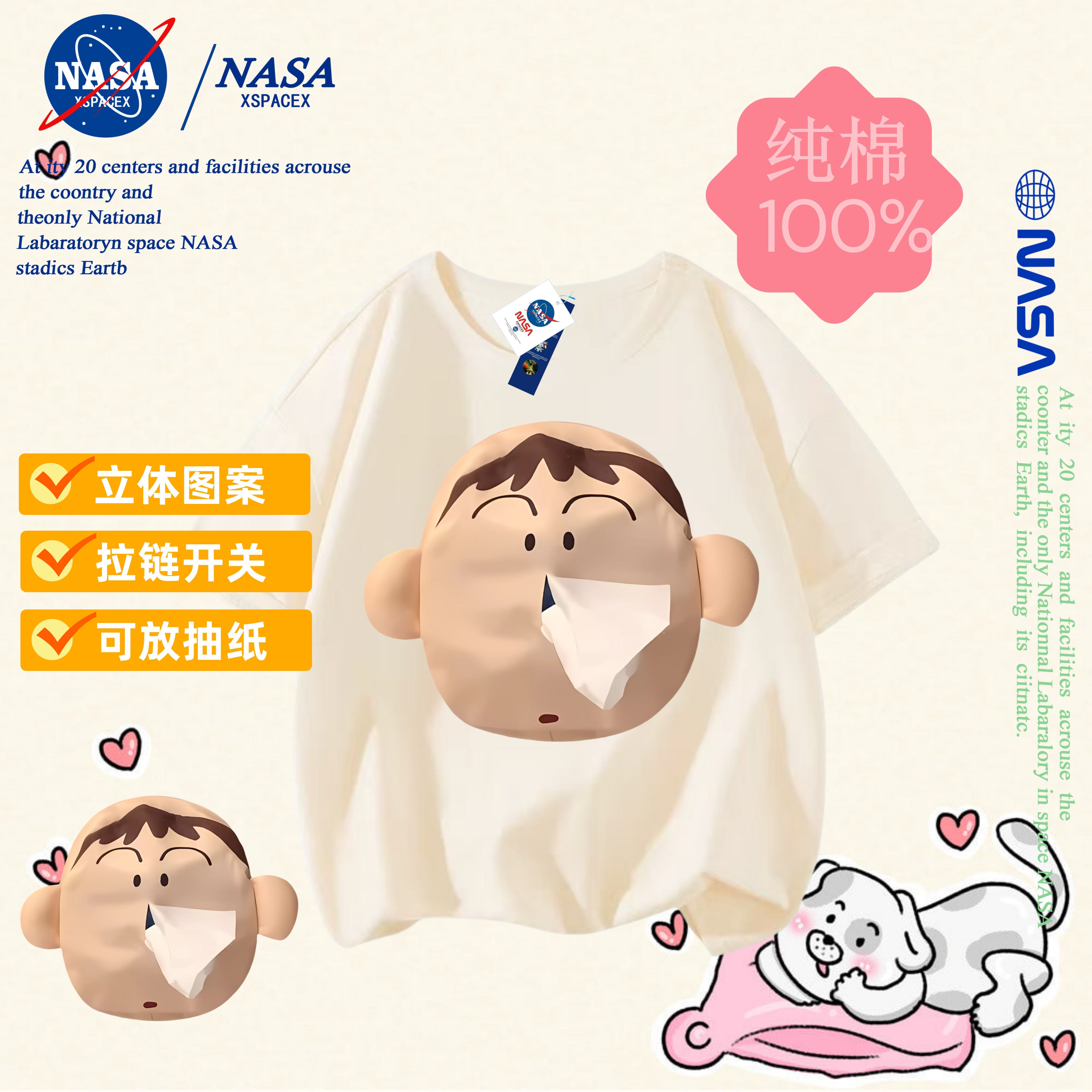 NASA聯名阿呆抽紙純棉T恤兒童搞怪抽紙親子裝短袖男女童衣服夏季
