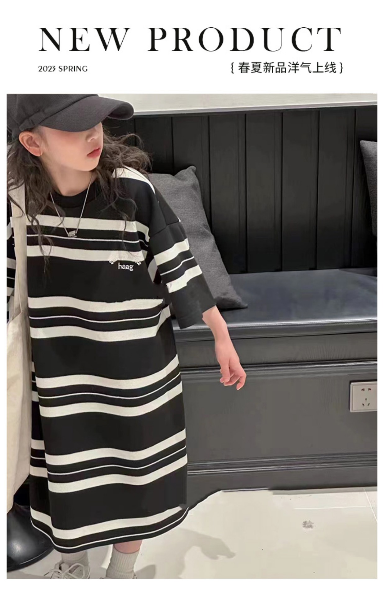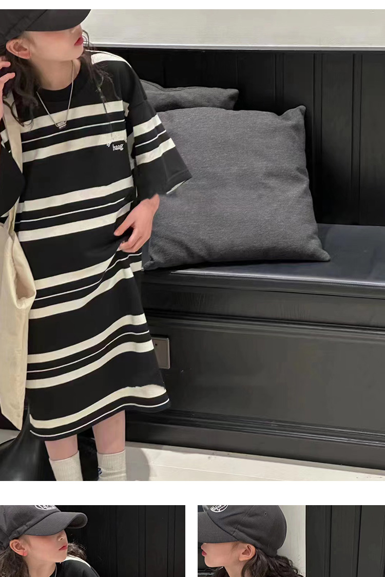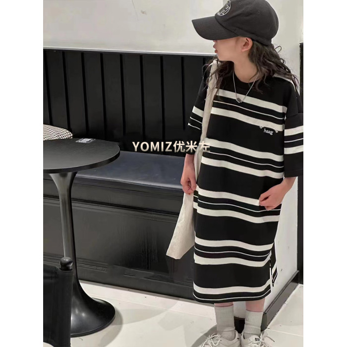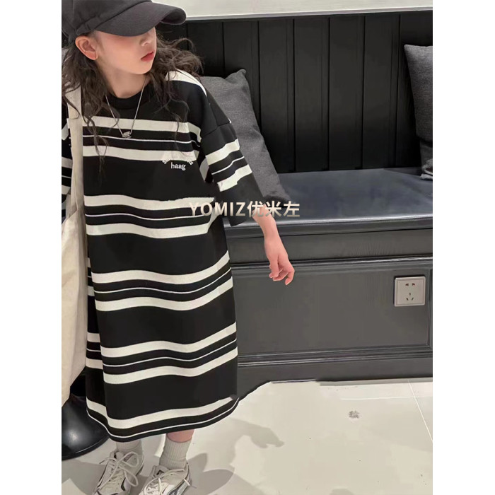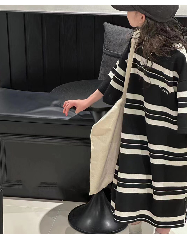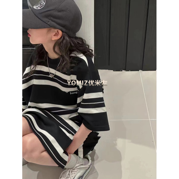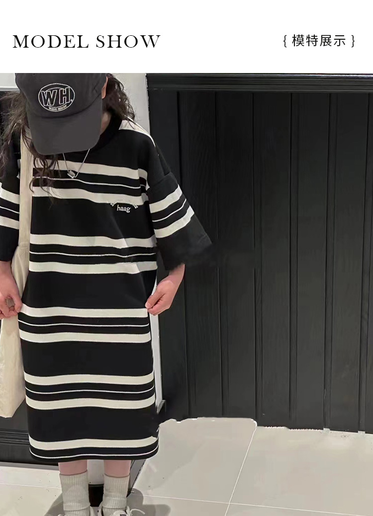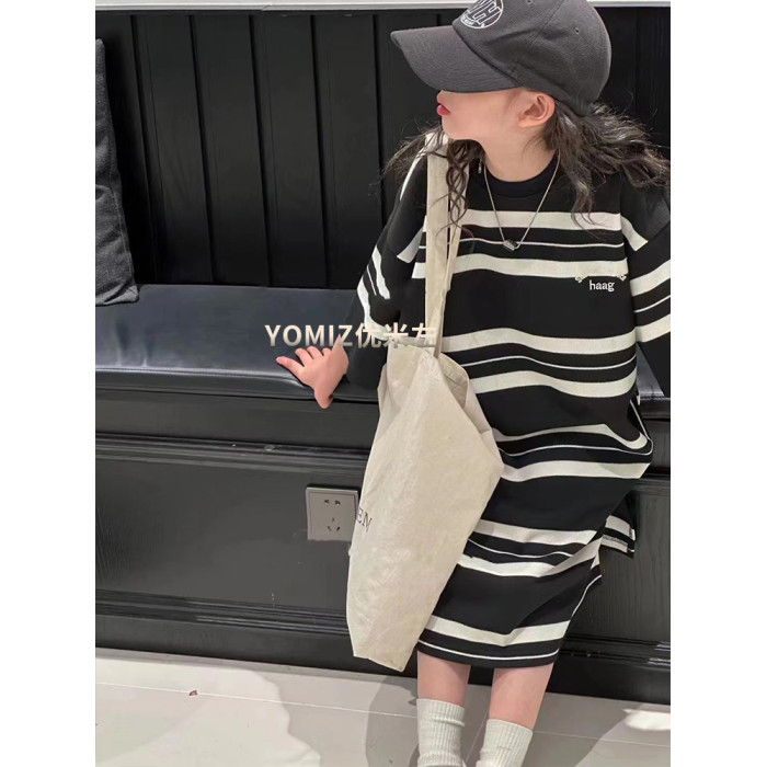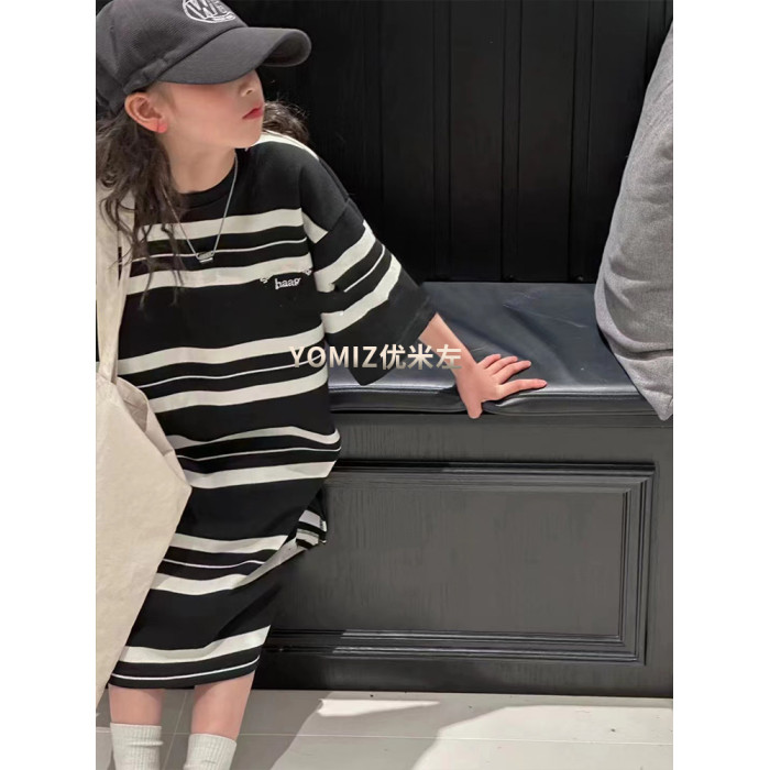 波拉bora韓國童裝女童條紋T恤裙春夏新款兒童韓版連衣裙洋氣時髦
