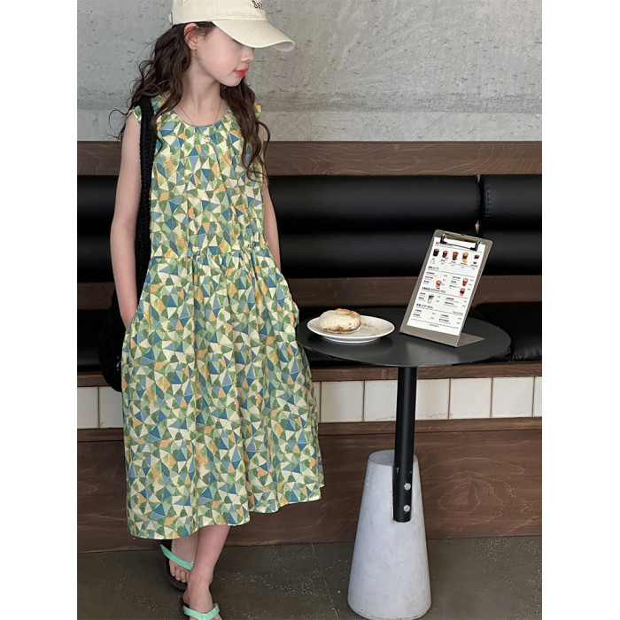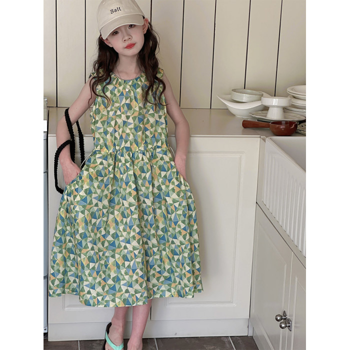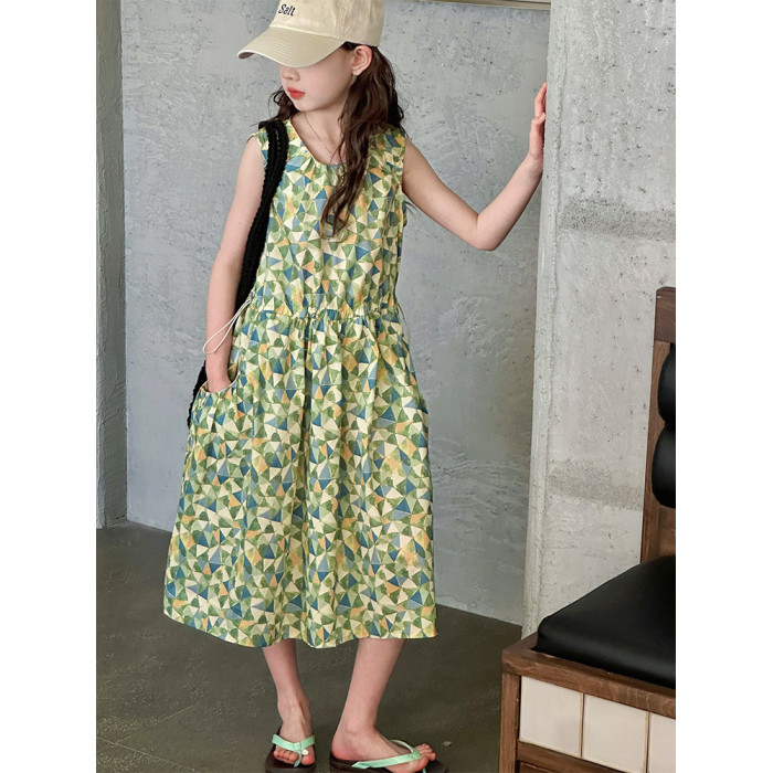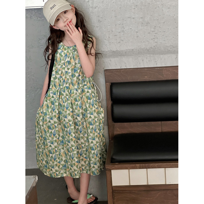 女童連衣裙夏季2025新款韓版洋氣兒童收腰背心裙女大童無袖棉布裙