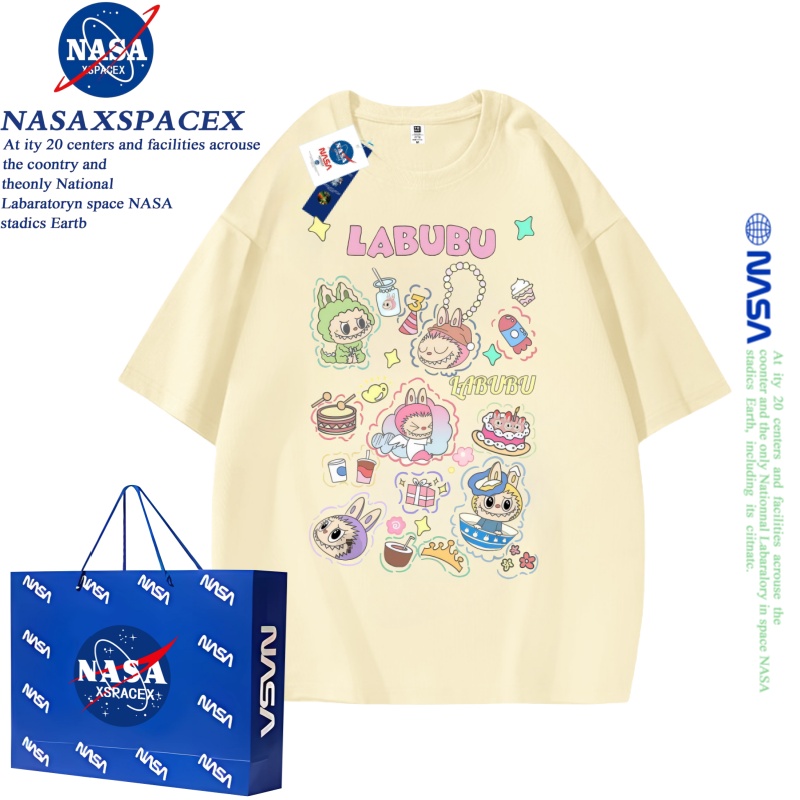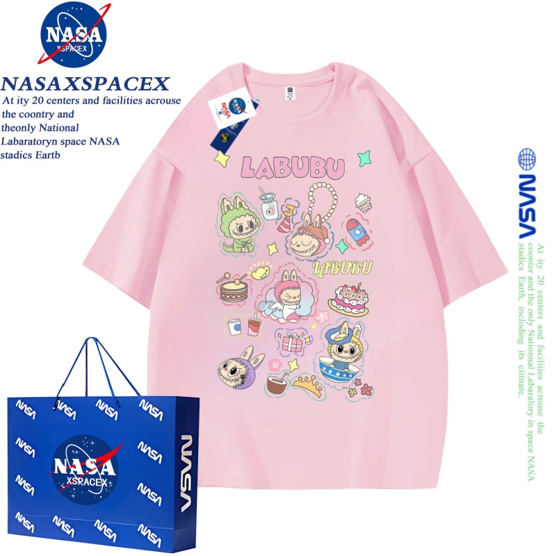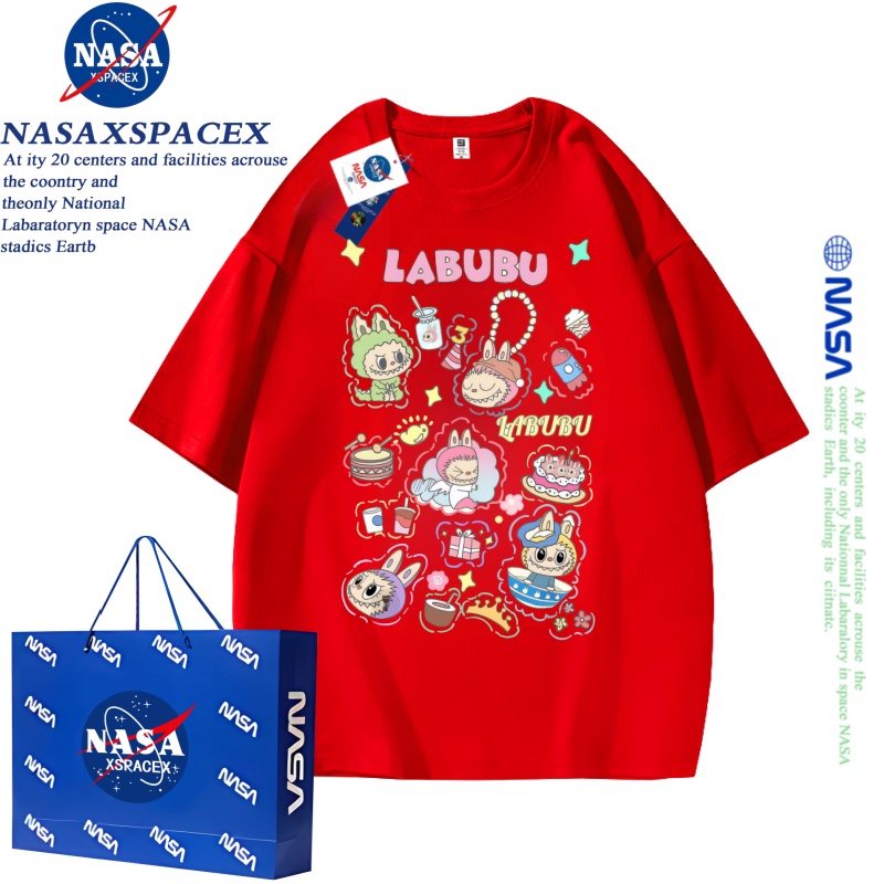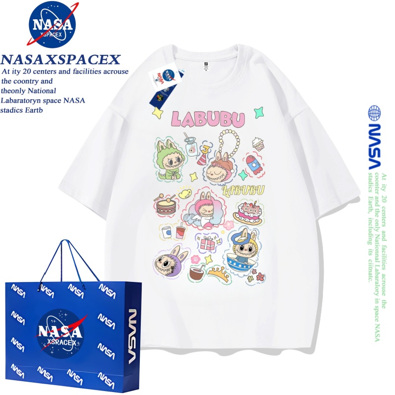 nasa聯名拉布布新款純棉圓領短袖t恤夏季上衣情侶款親子裝