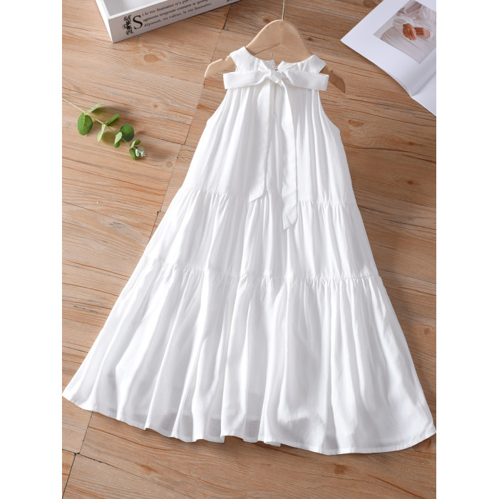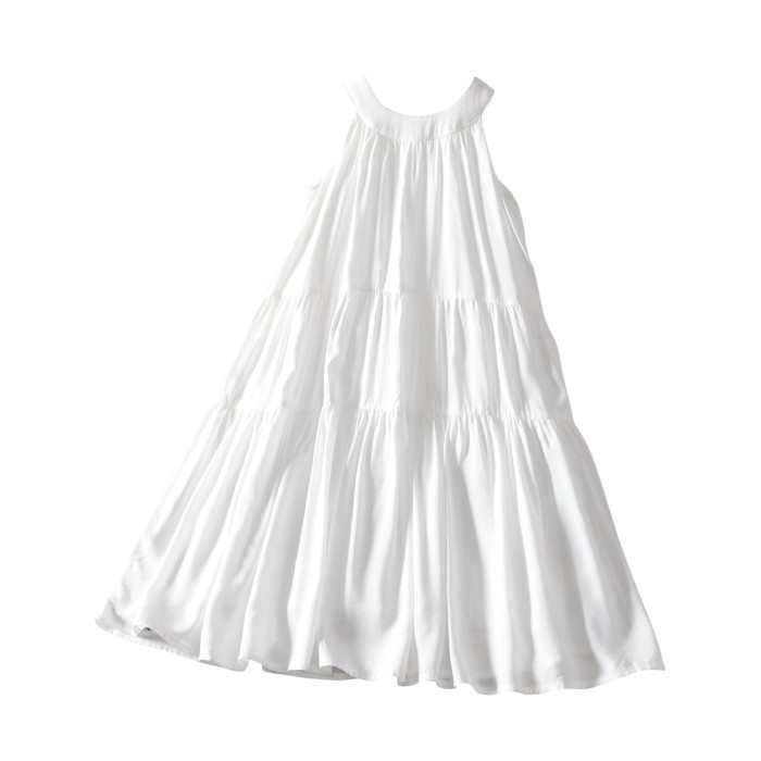 法式茶歇氣質親子裝母女夏季掛脖沙灘裙海邊度假可紥染白色