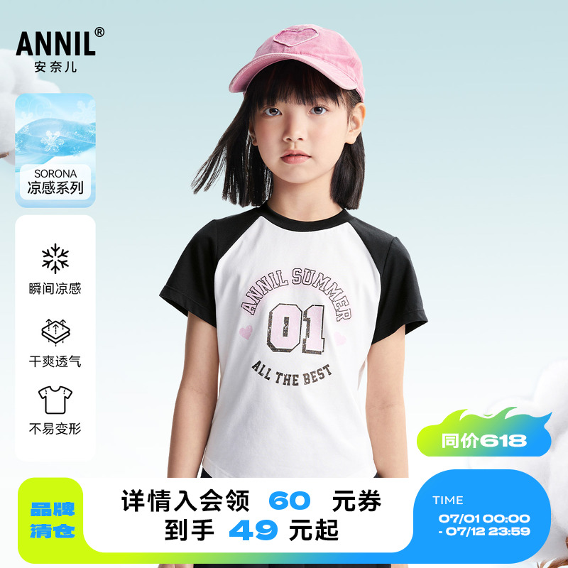 安奈兒童裝女童圓領短袖T恤2025夏新款休閒涼感速乾透氣彈力時尚