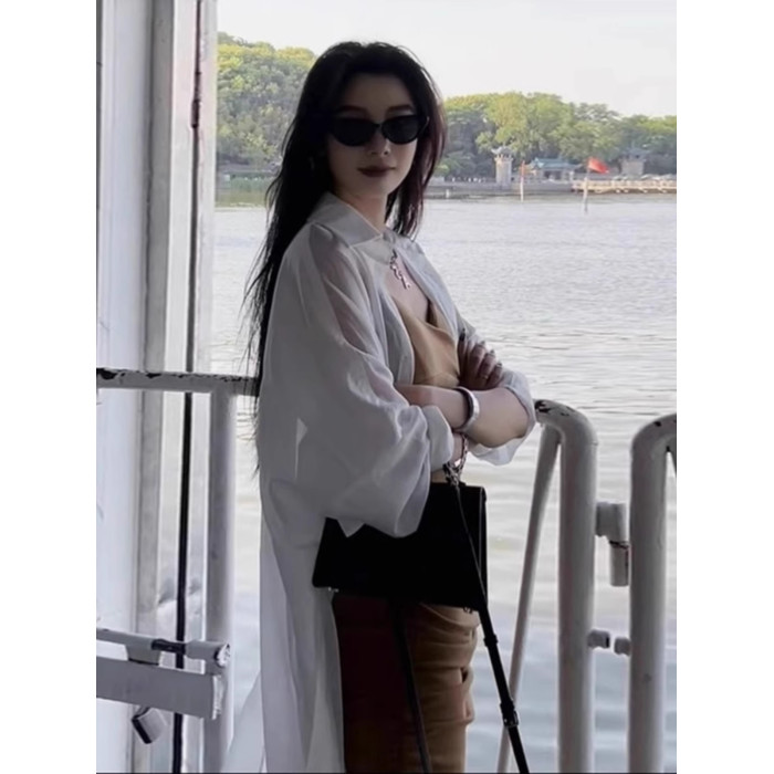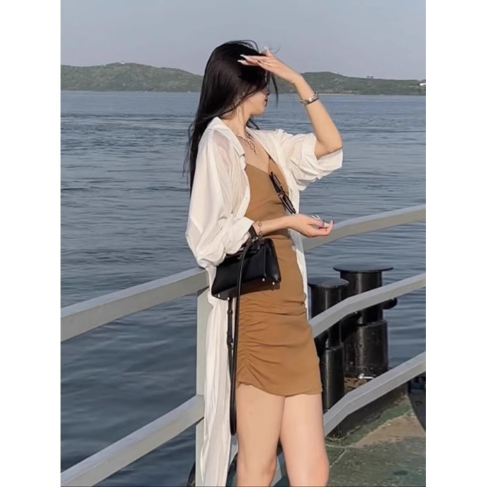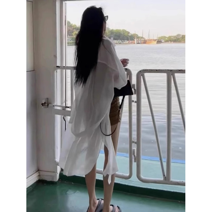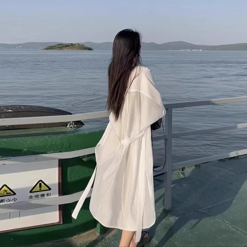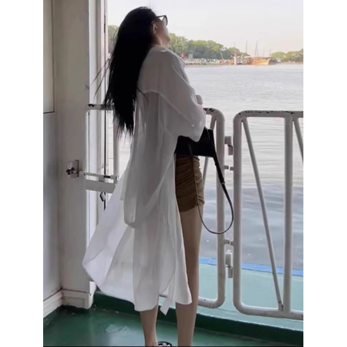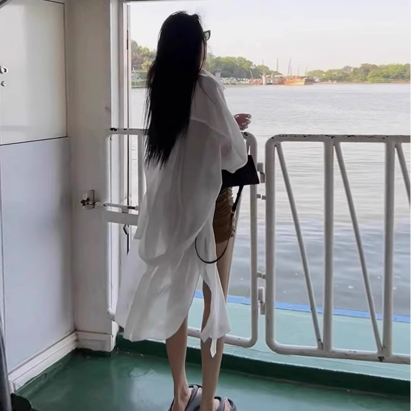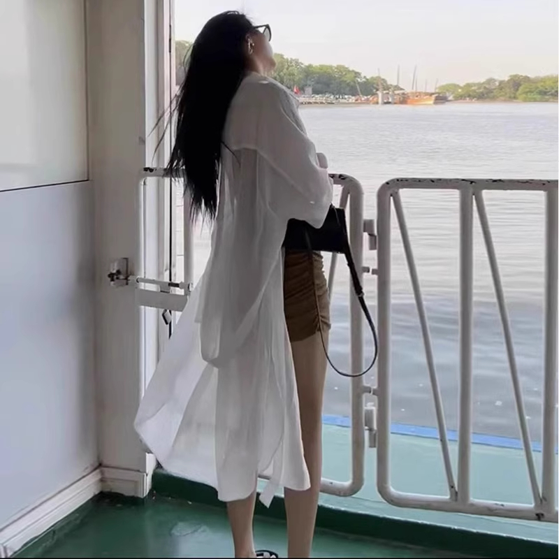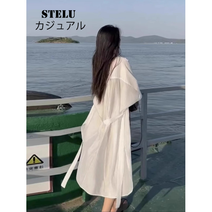 日本STELU冰絲薄紗雪紡防曬衣女夏季中長款開衫吊帶裙外搭罩上衣