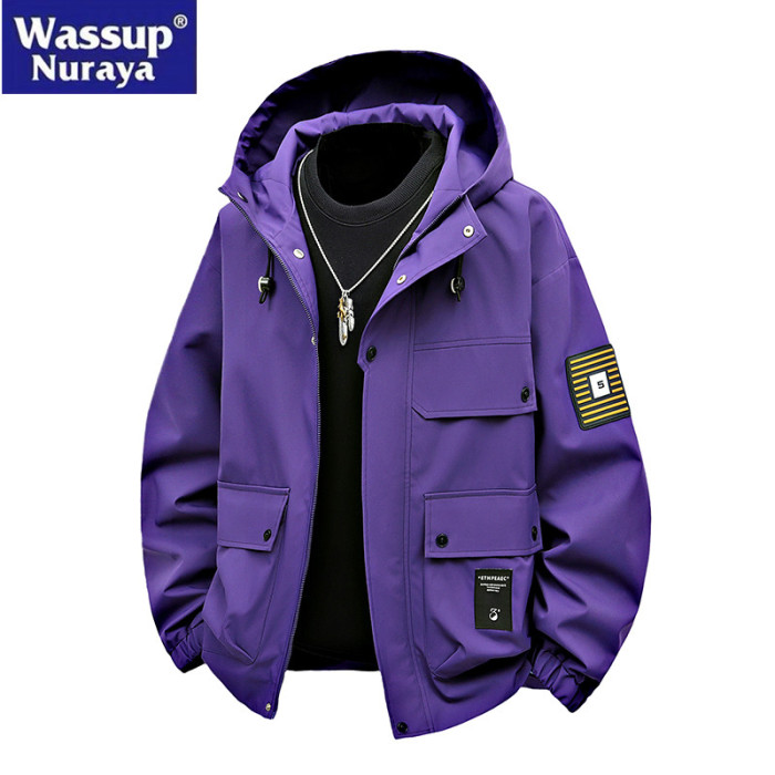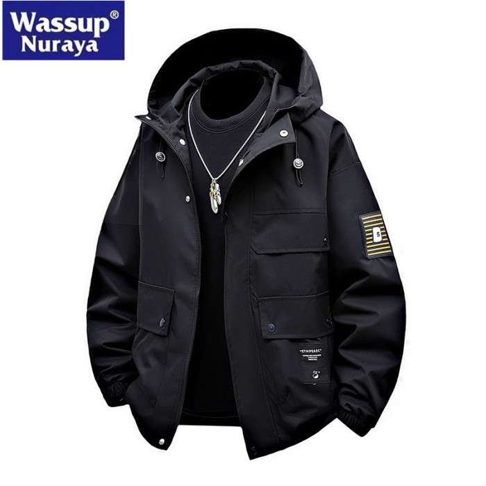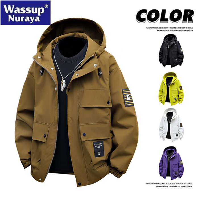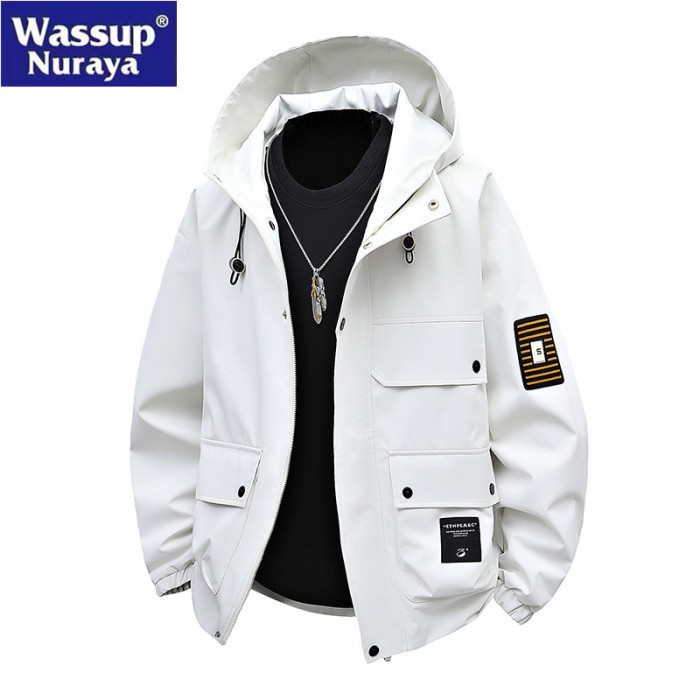 WASSUP Nuraya潮牌連帽沖鋒衣男外套春秋美式休閒工裝大口袋夾克