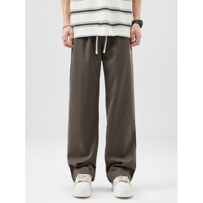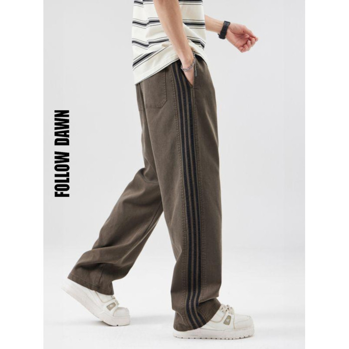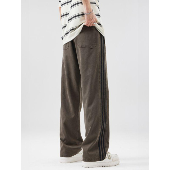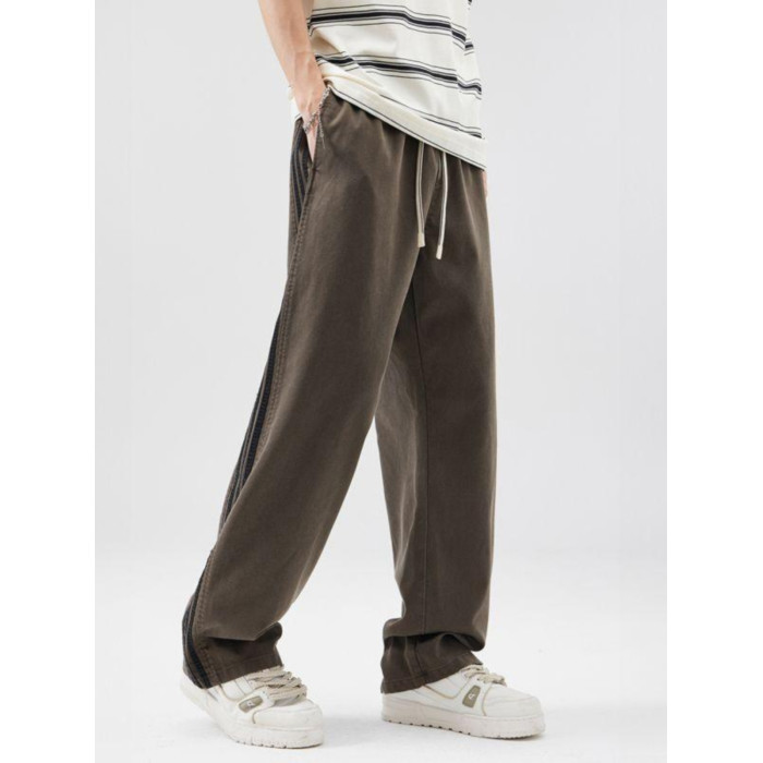 2025美式側邊條紋拼接三條杠春季休閒褲男垂感潮牌運動衛褲長褲
