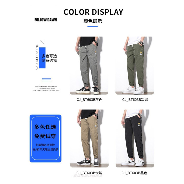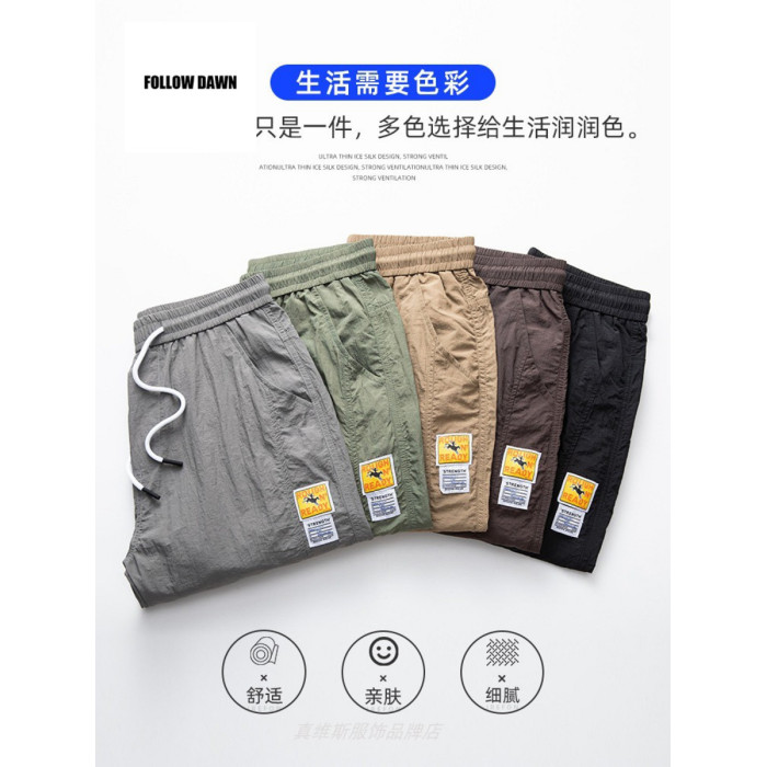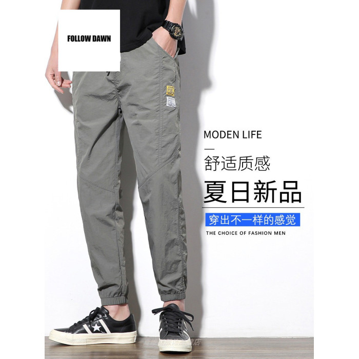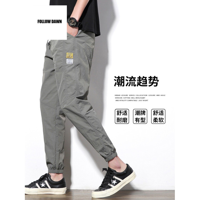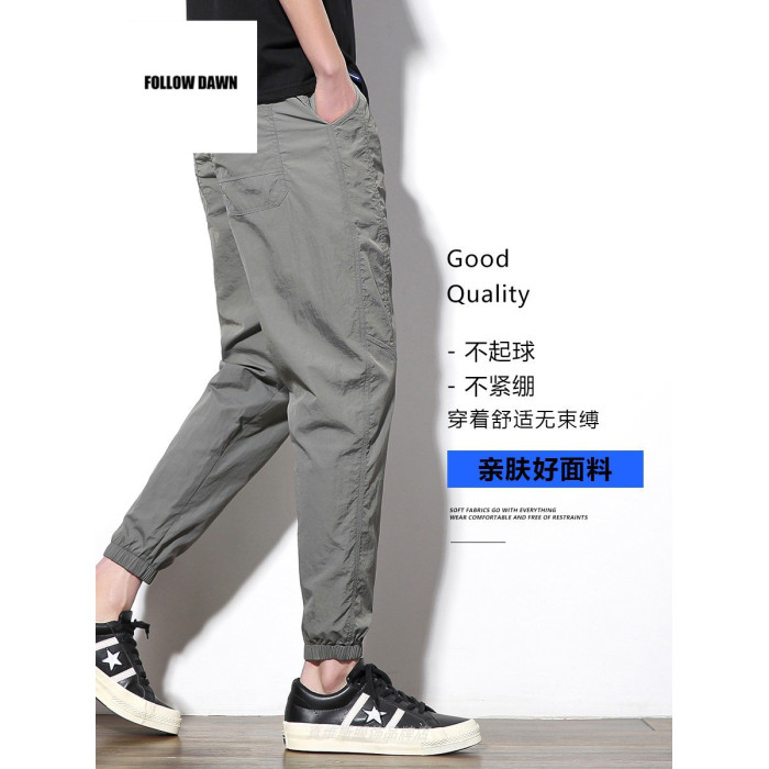 冰絲速乾九分休閒長褲子男士夏季超薄款寬松束腳運動工裝