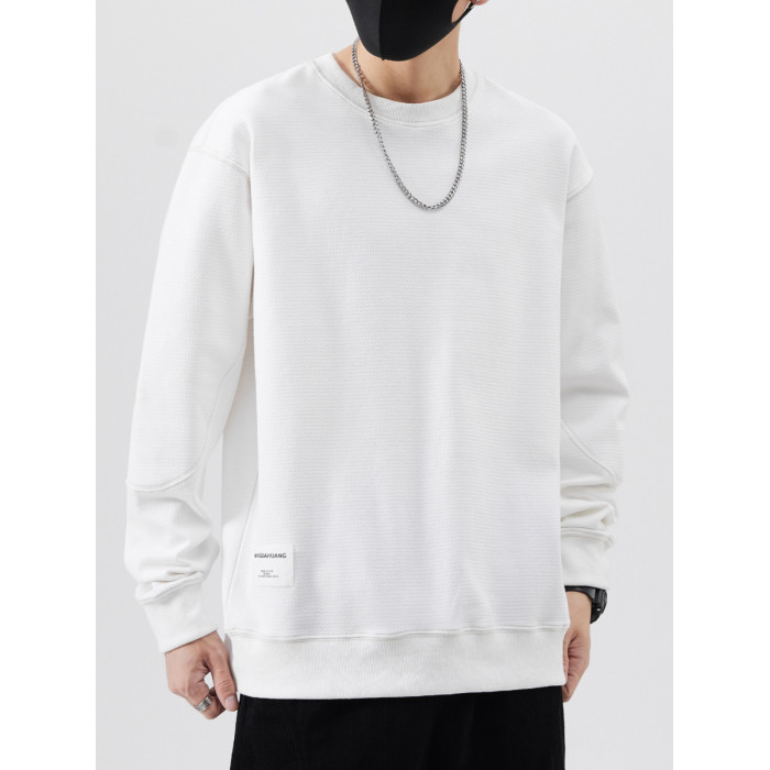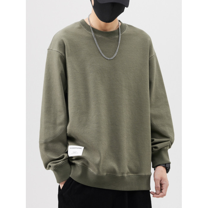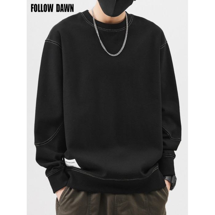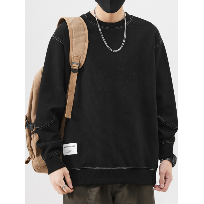 黑色圓領衛衣男士2025春季寬松休閒打底衫純色長袖T恤男生外套