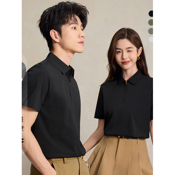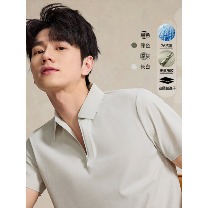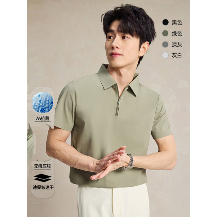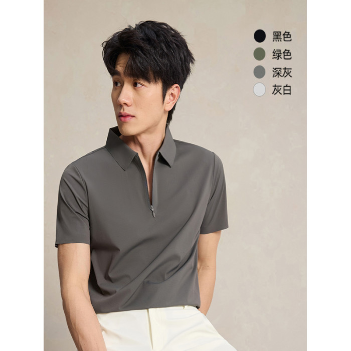 冰肌速乾桑皺面料新款短袖POLO衫T恤2025春夏新款商務休閒純色男