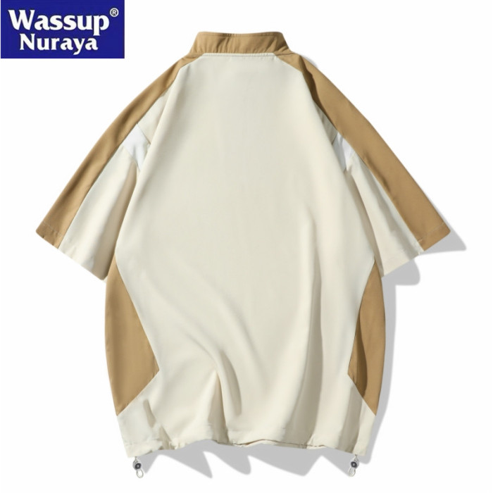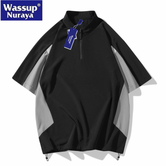 WASSUP Nuraya潮牌半拉鍊POLO衫男士夏季T恤拼接戶外運動服短袖