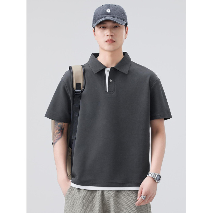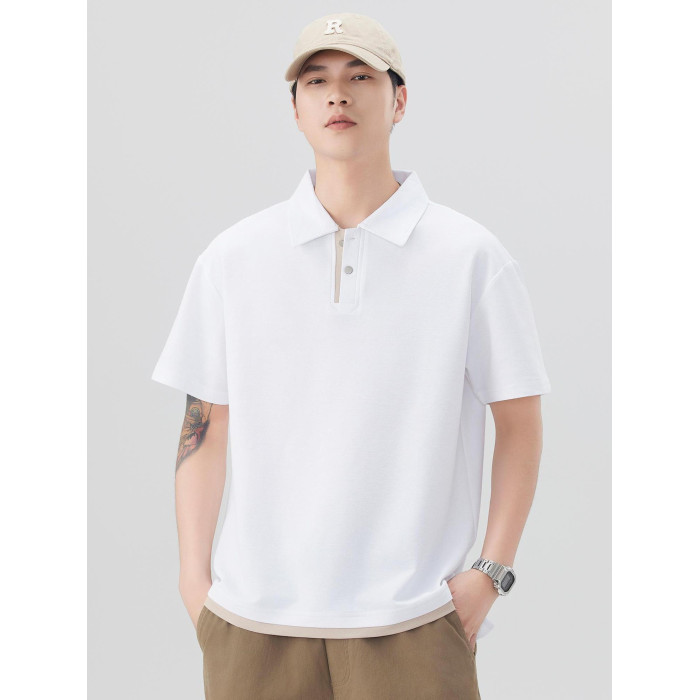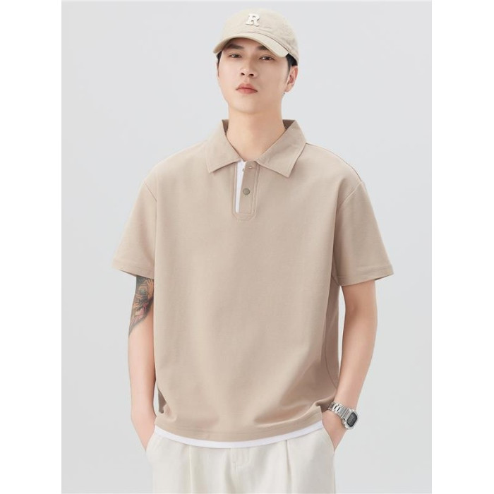 男士短袖polo衫重磅夏季新款美式休閒撞色假兩件拼接翻領半袖衫