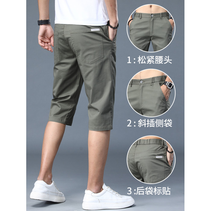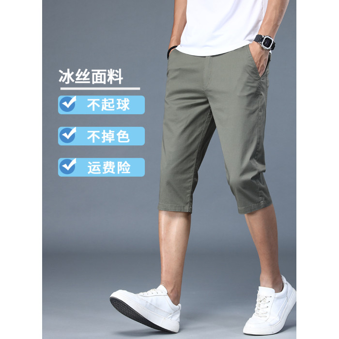 啄木鳥冰絲休閒短褲男士七分褲夏季2025新款西裝褲中年爸爸褲子K