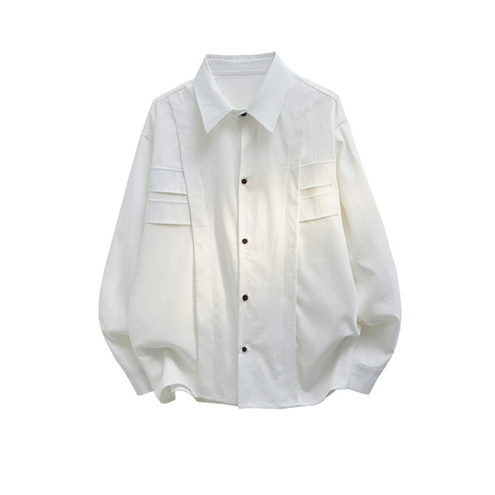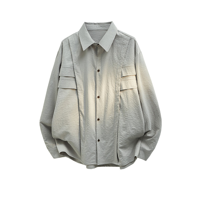 WASSUP NURAYA日系潮流假口袋裝飾襯衫男士春秋百搭寬松長袖襯衣