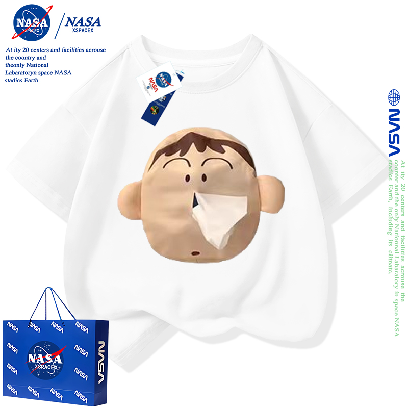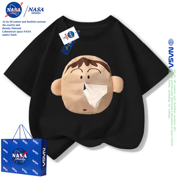 NASA阿呆抽紙兒童搞怪隨身帶紙親子裝短袖T恤夏裝純棉小醜魚衣服