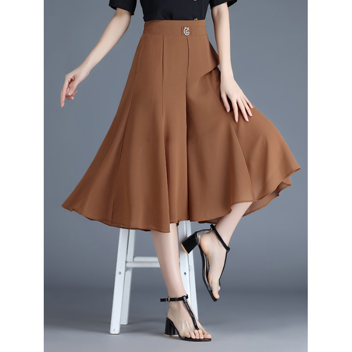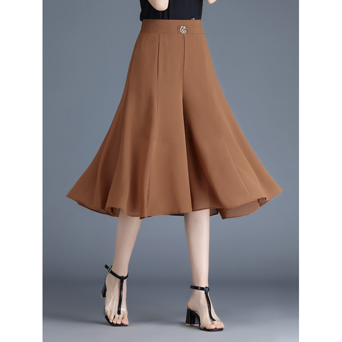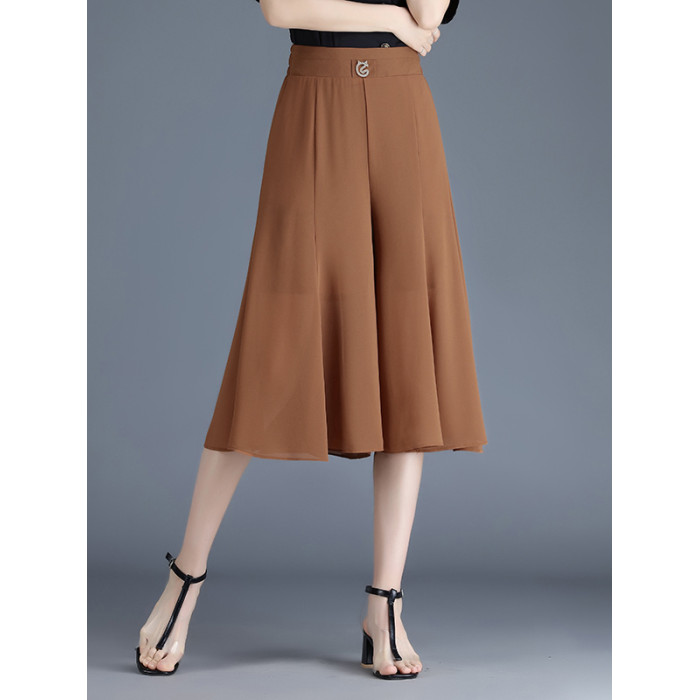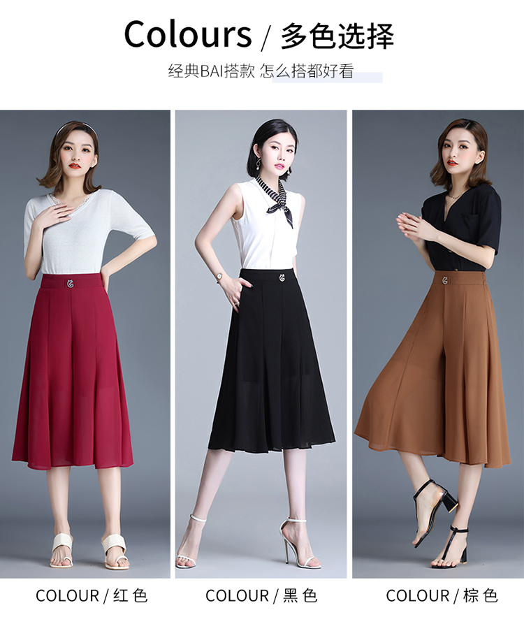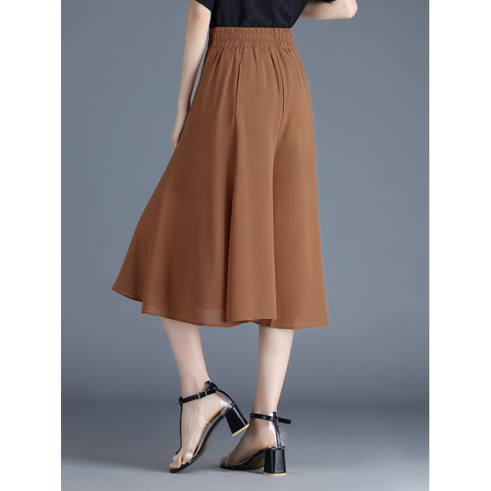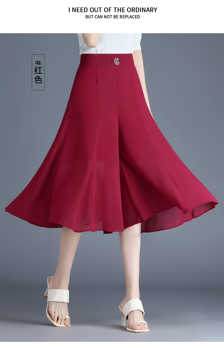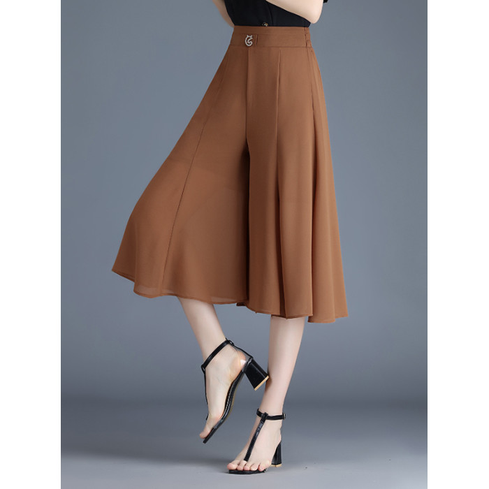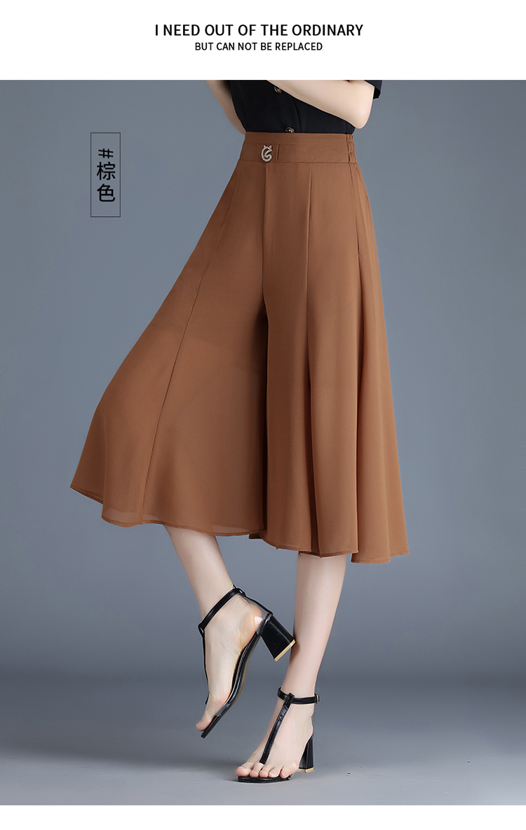 裙褲女夏薄款2025新款高腰七分小個子寬松媽媽褲子垂感雪紡濶腿褲