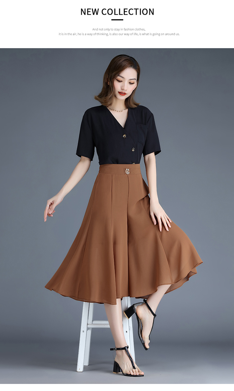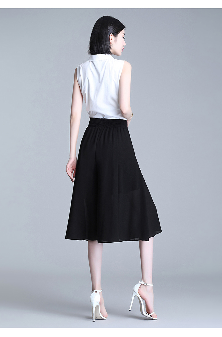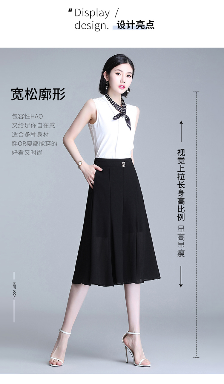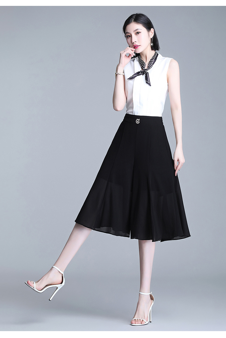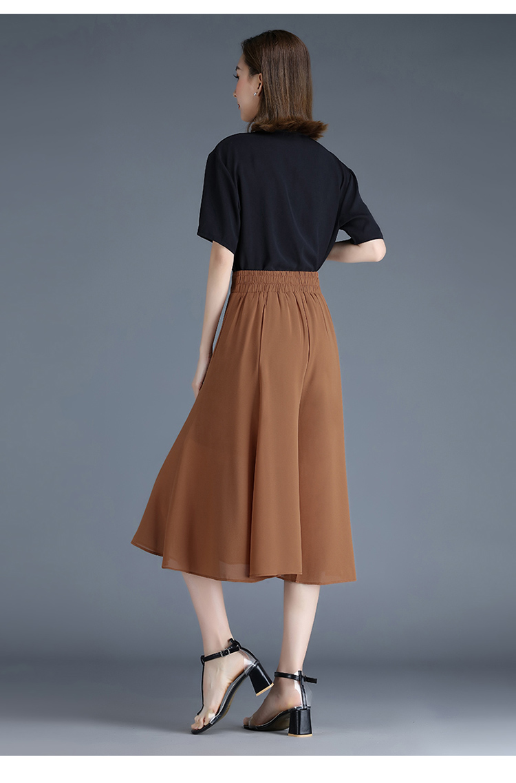 裙褲女夏薄款2025新款高腰七分小個子寬松媽媽褲子垂感雪紡濶腿褲