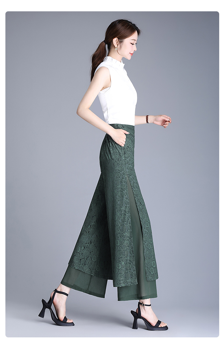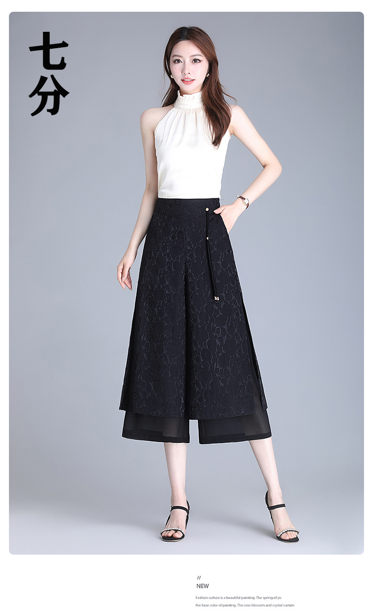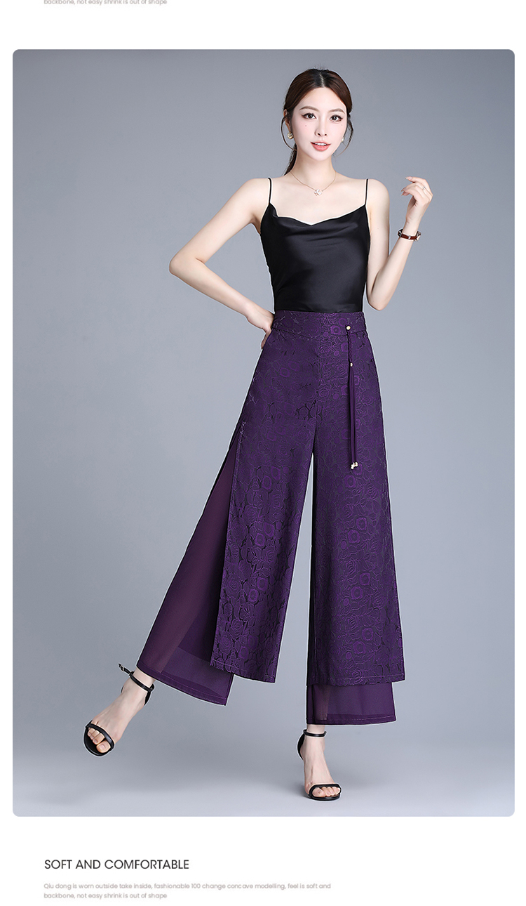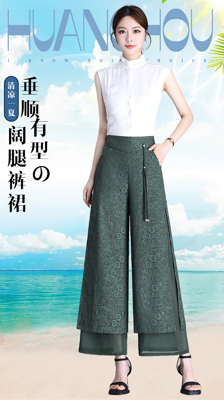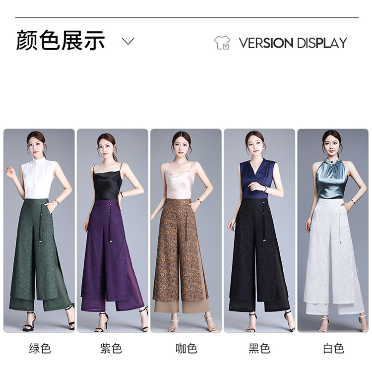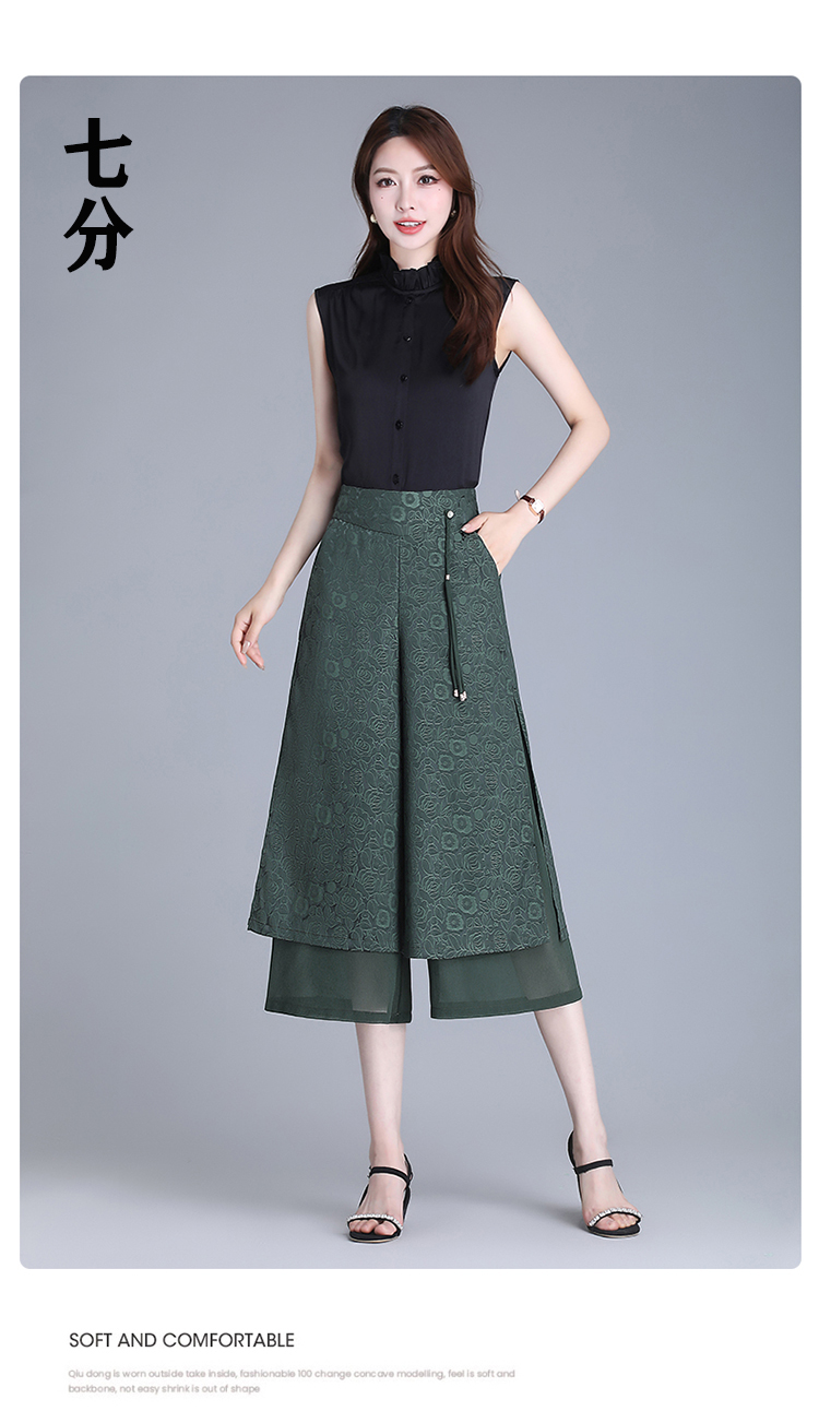 國風開叉褲子女夏季薄款高腰寬松直筒顯瘦垂感中式提花冰絲濶腿褲