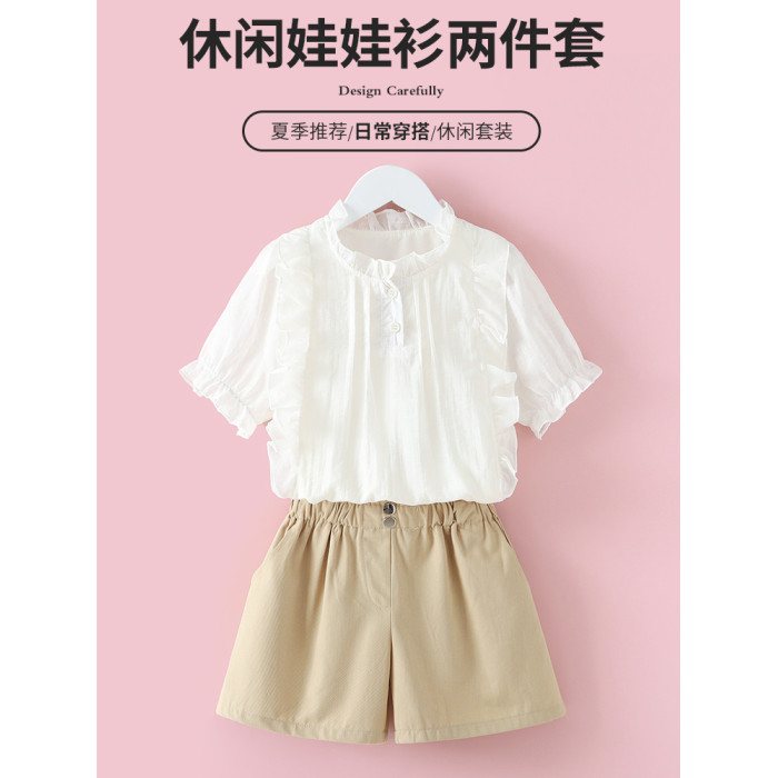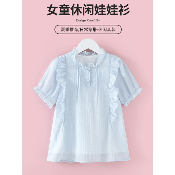 女童短袖襯衫夏季2025新款兒童夏裝立領上衣服娃娃衫女孩薄款襯衣