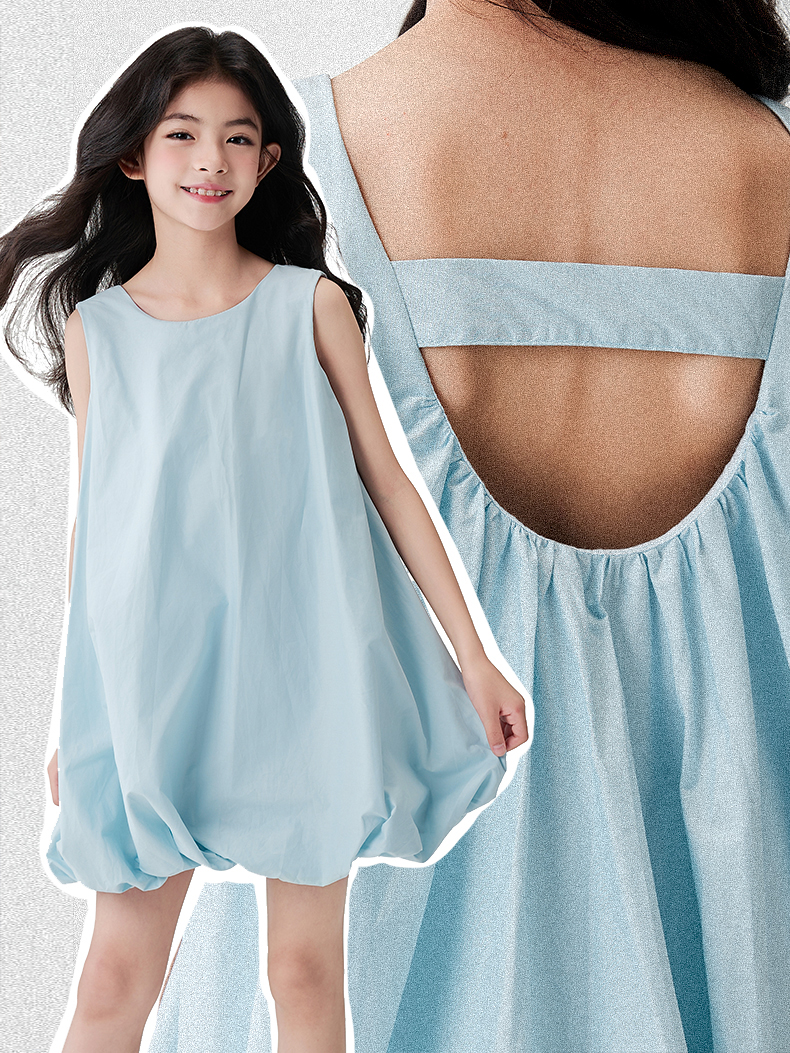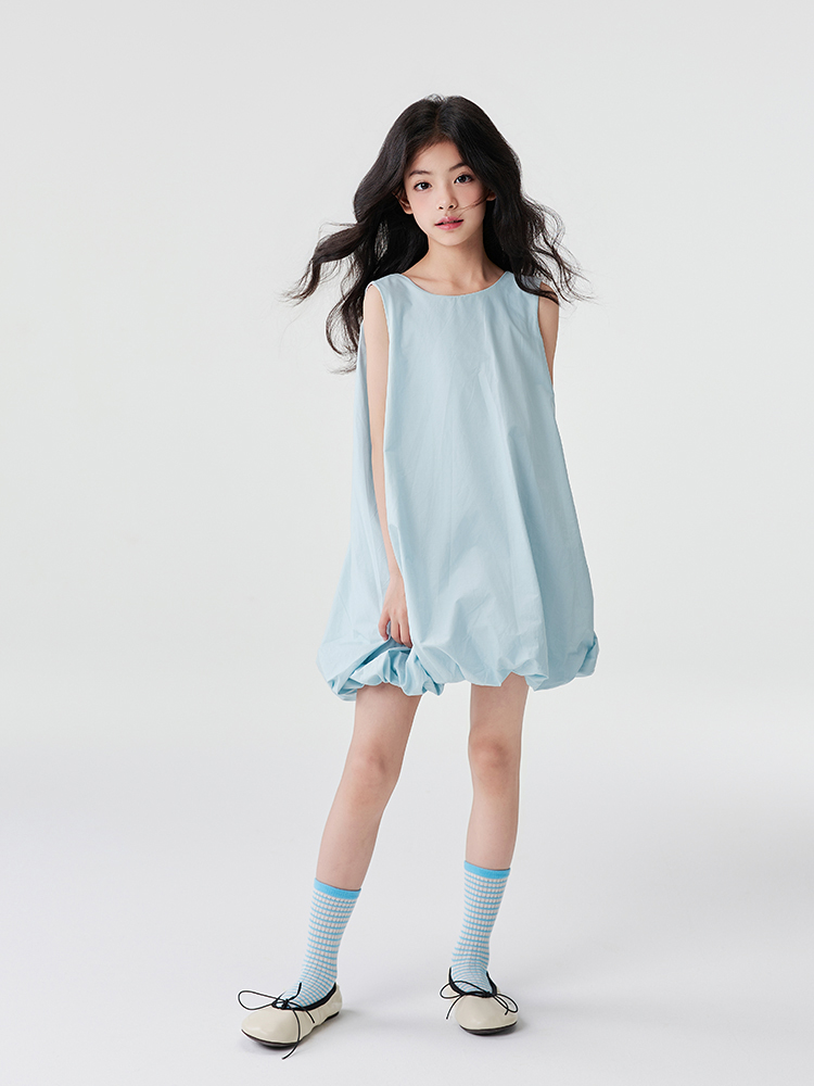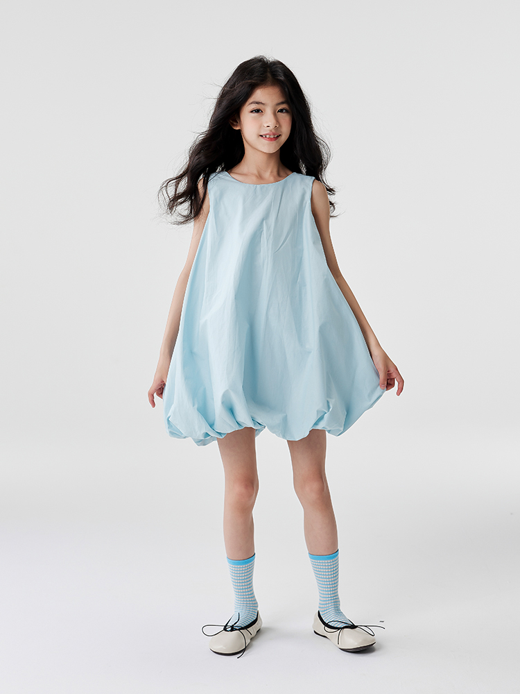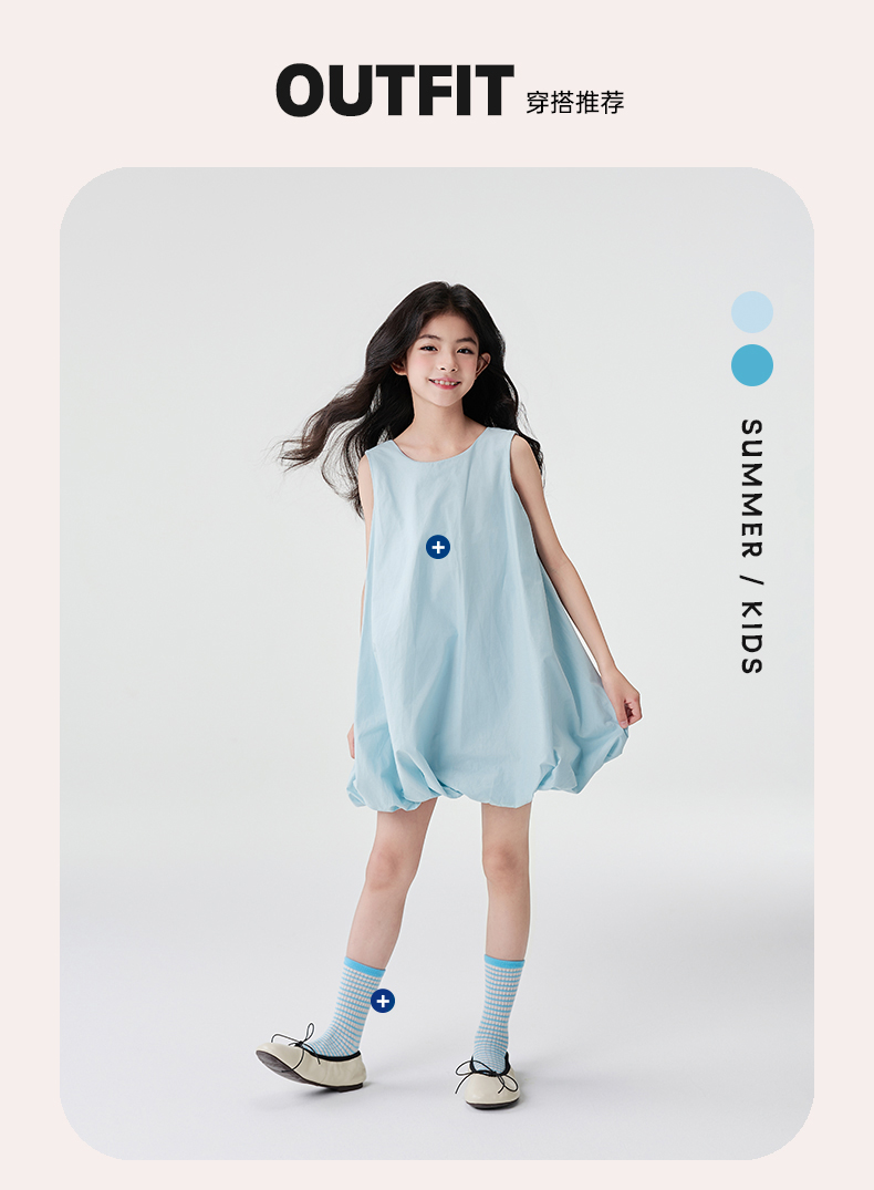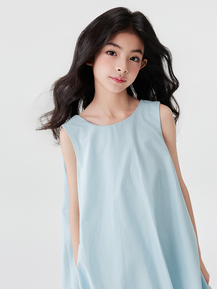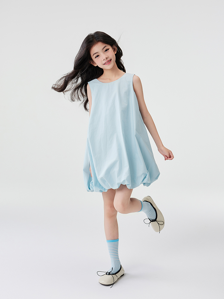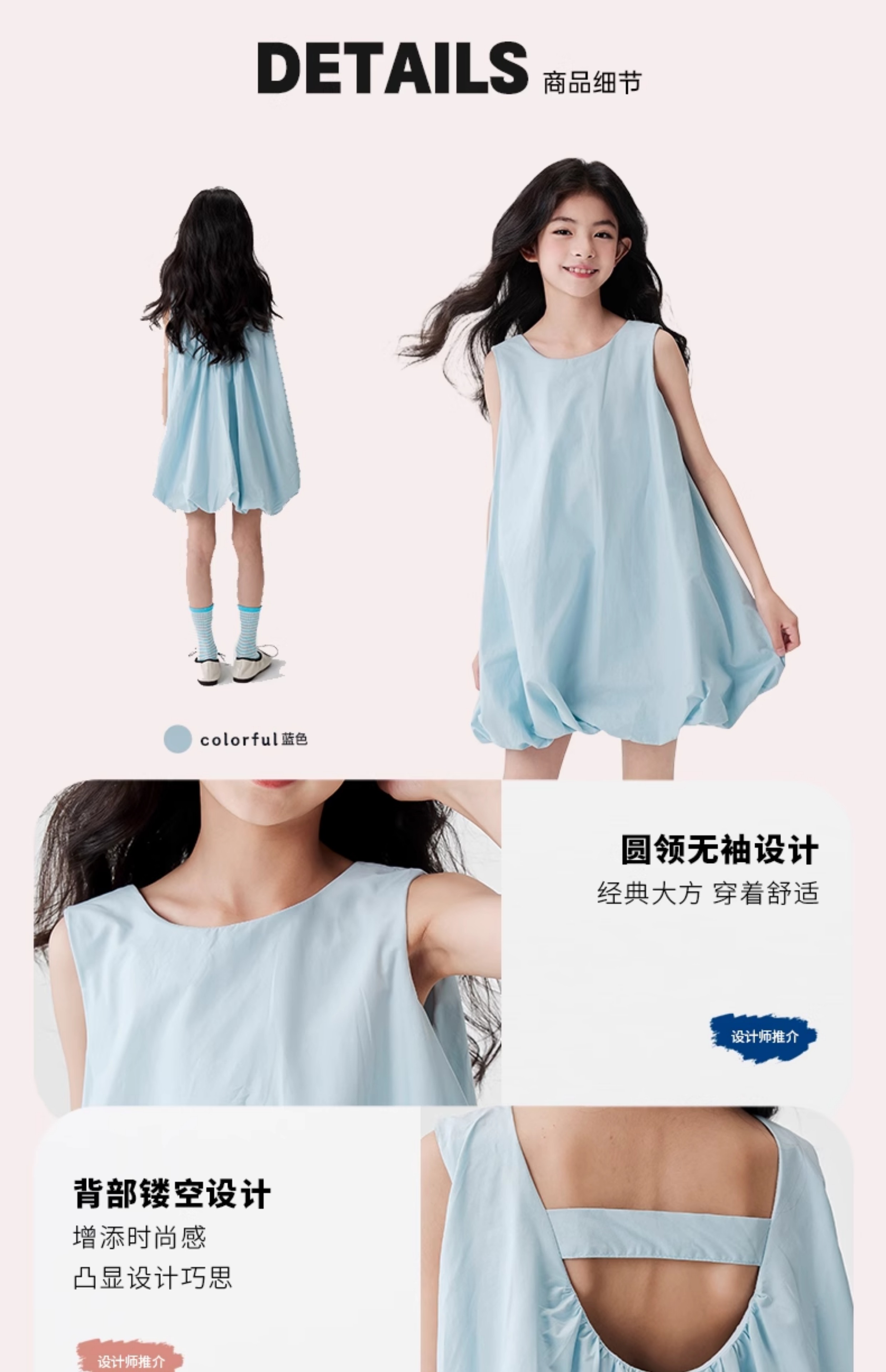 花笙糖女童無袖連衣裙中大童夏季新款純色背心裙女孩可愛花苞裙