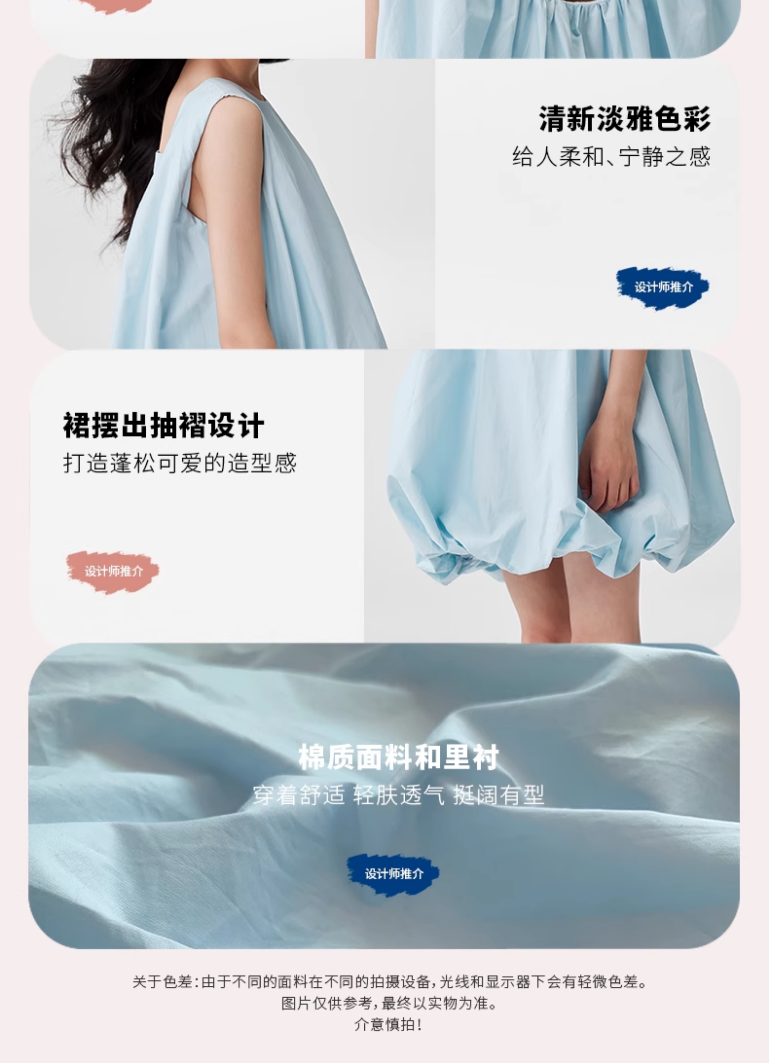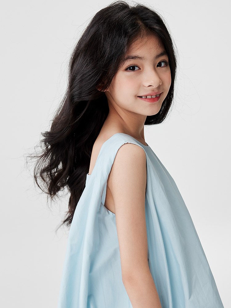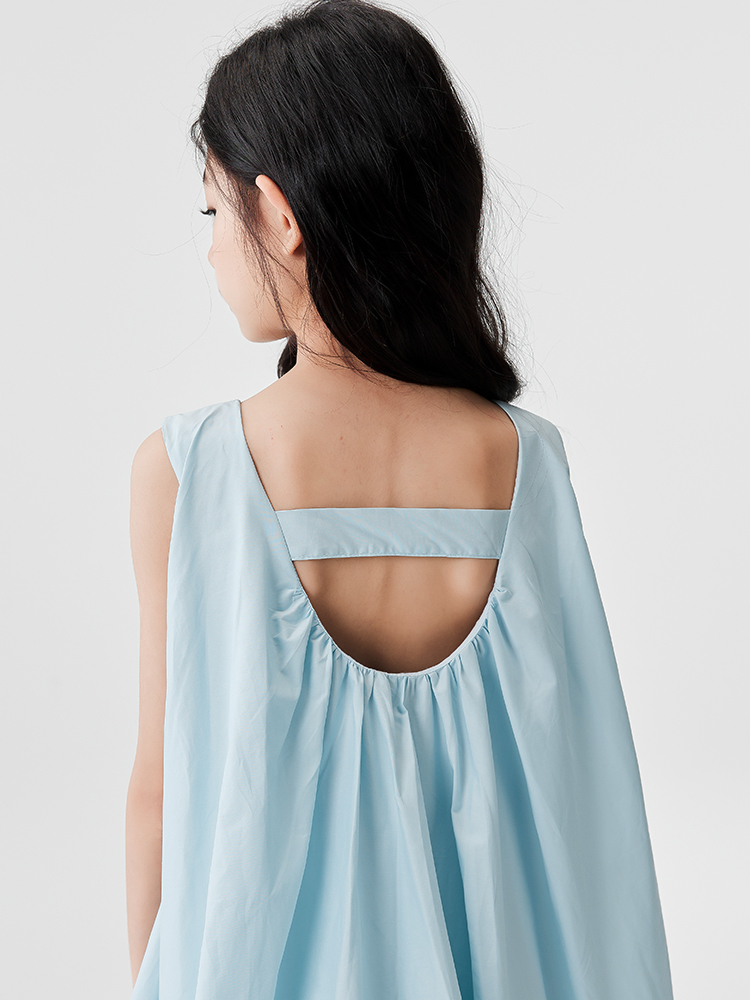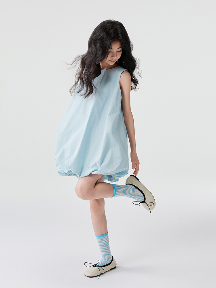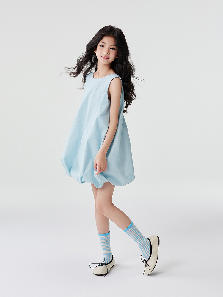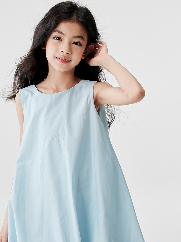 花笙糖女童無袖連衣裙中大童夏季新款純色背心裙女孩可愛花苞裙