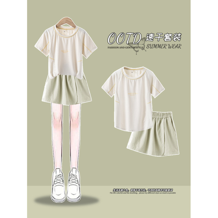 19182黃色+2235豆綠色 【速乾裙褲套裝】