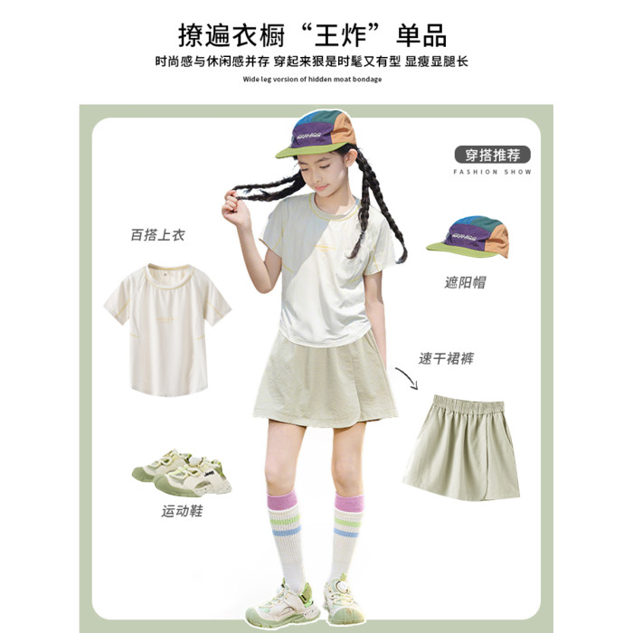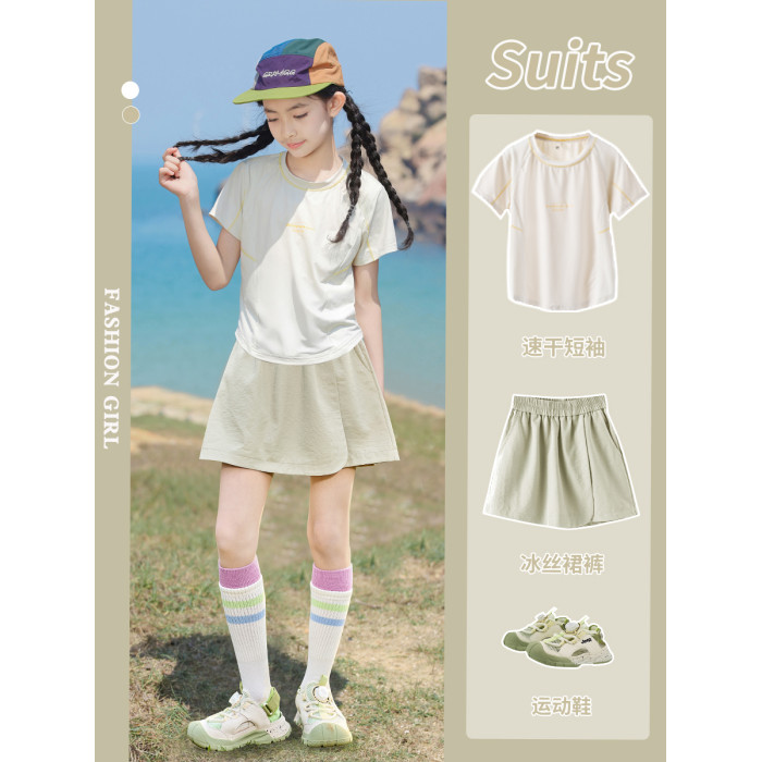 女童運動速乾套裝兒童夏新款冰絲短褲女孩網球訓練羽毛球服女大童