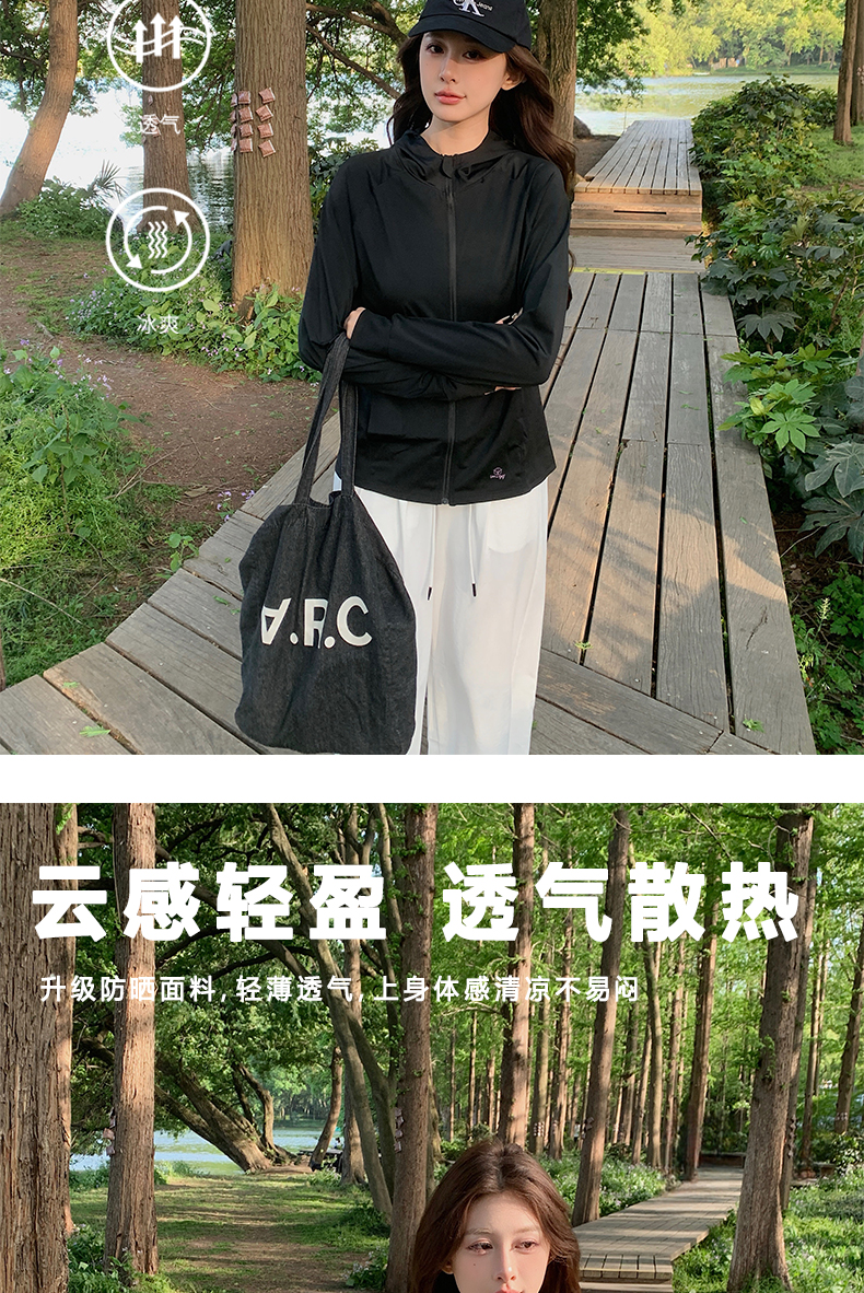 2025新款防曬衣女夏季冰絲防紫外線原紗型寬松連帽透氣防曬服外套