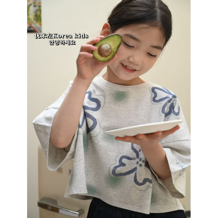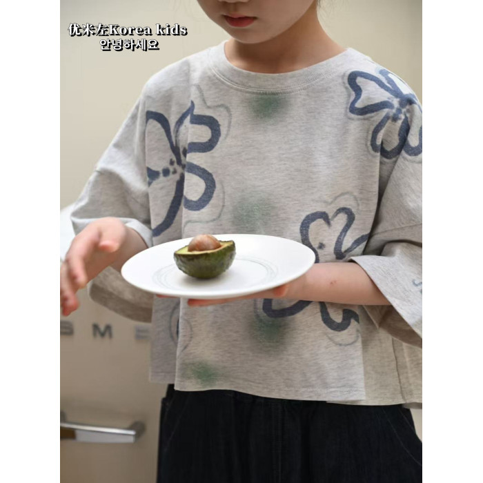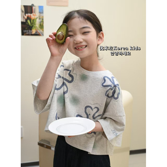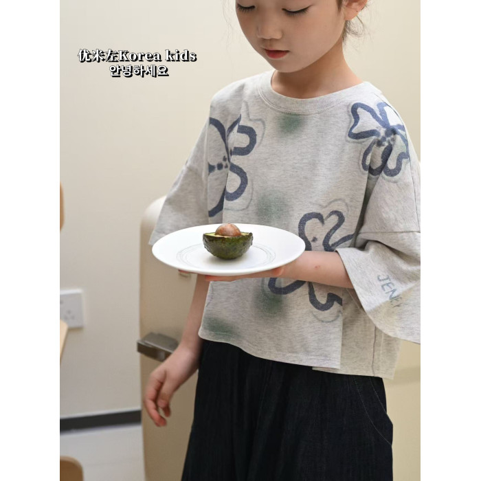 超好看女孩短款韓範純棉上衣2025新款洋氣女童夏裝兒童短袖T恤
