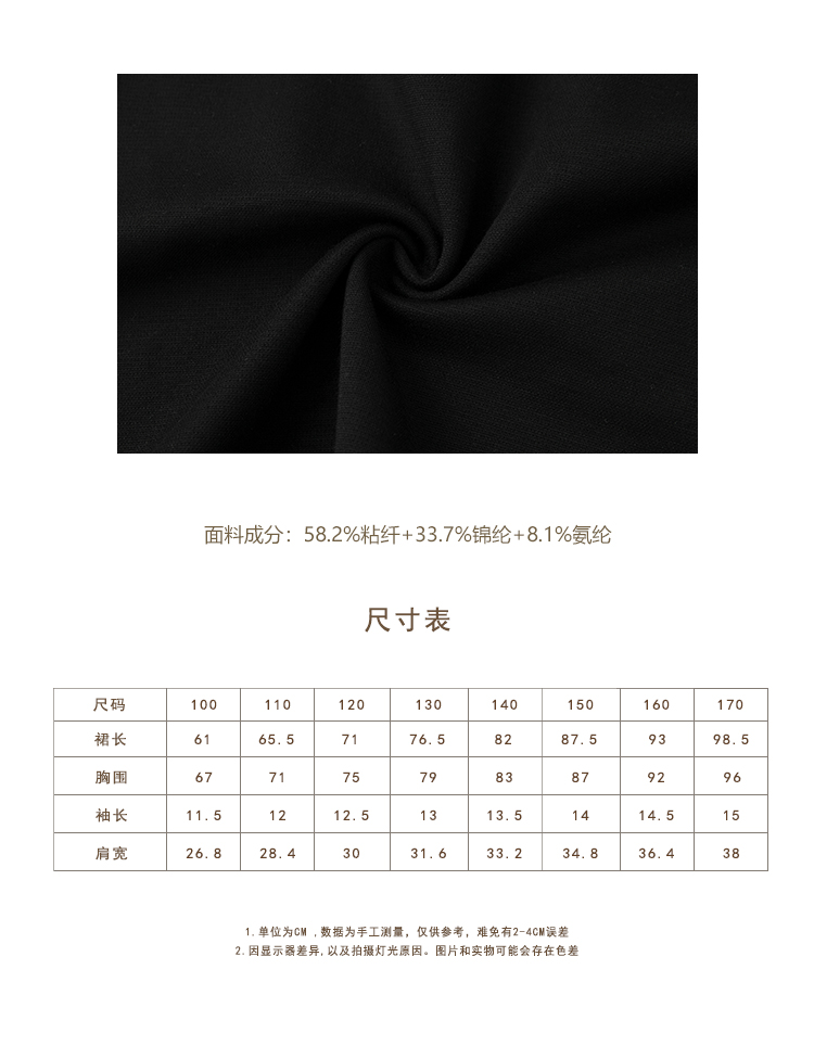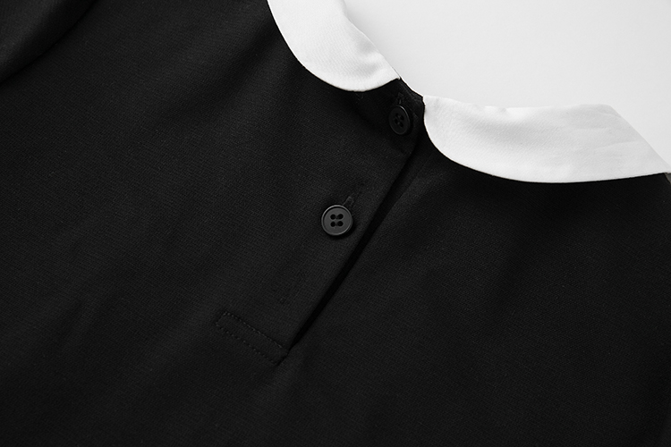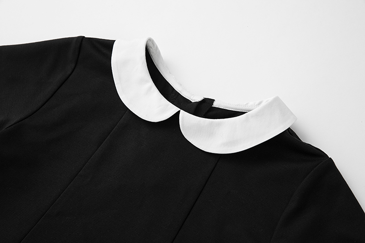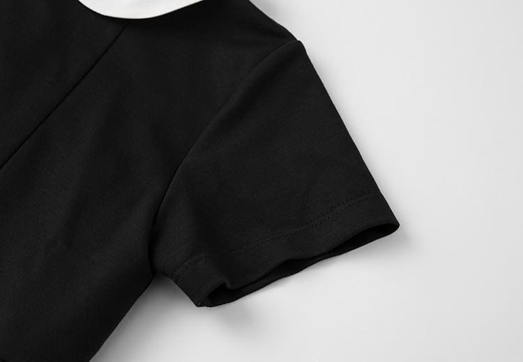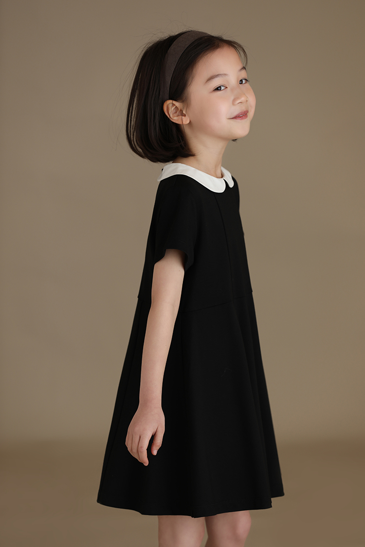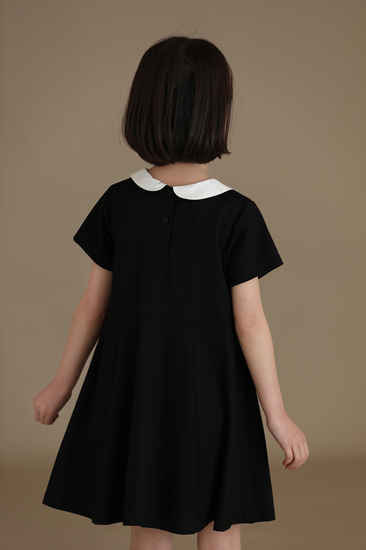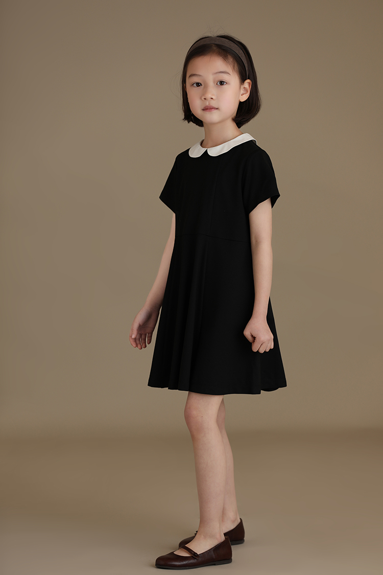 哈齒童裝新品女童親子款日系撞色拼接娃娃領黑色短袖連衣裙洋氣夏
