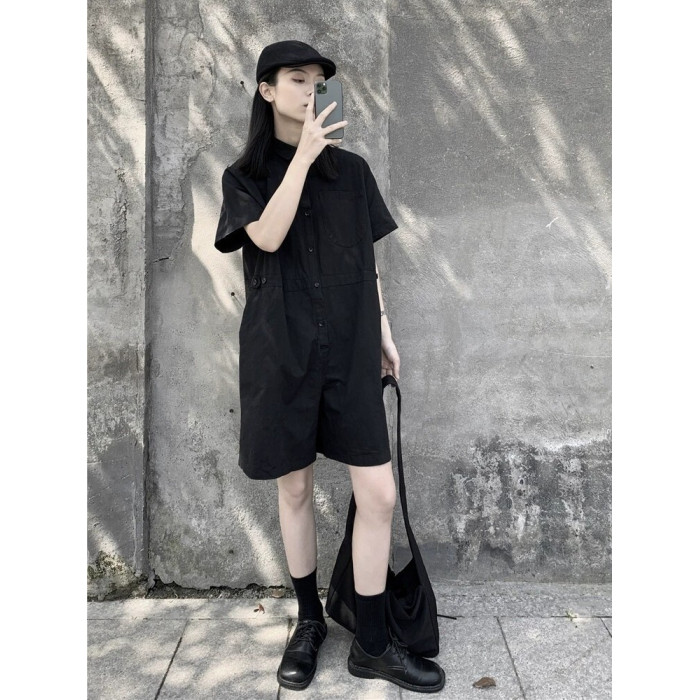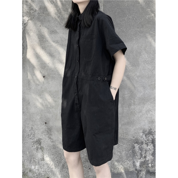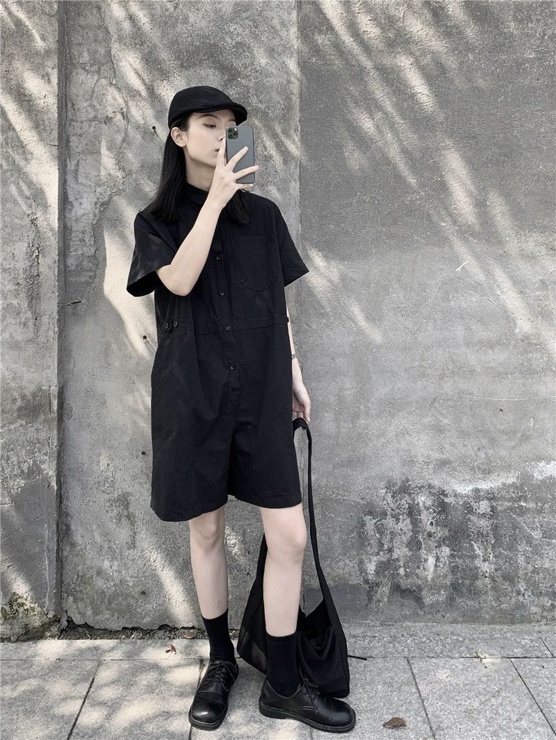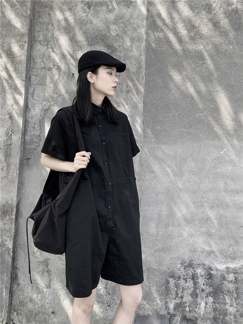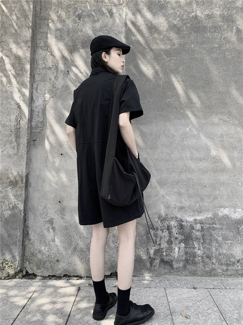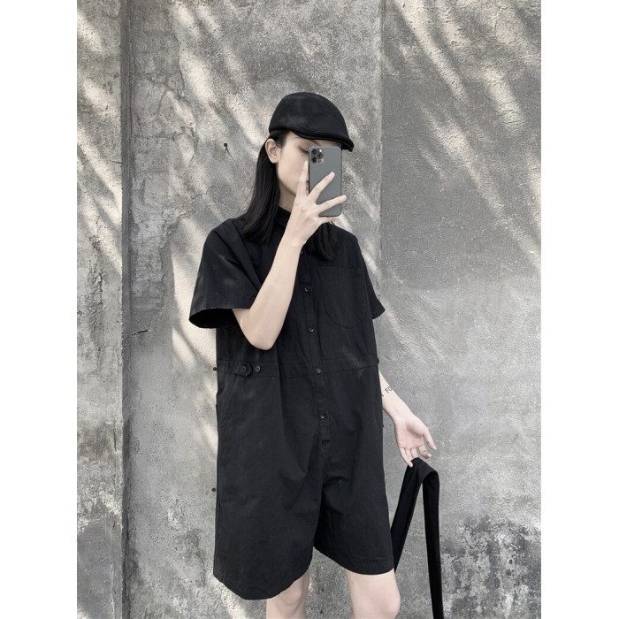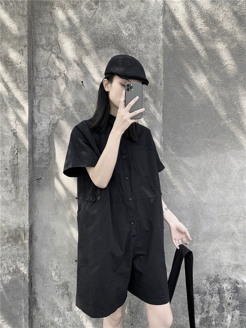 暗黑山本工裝設計感休閒連體短褲女男寬松顯瘦夏新款連體衣五分褲
