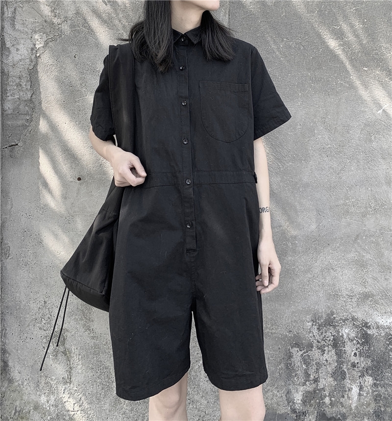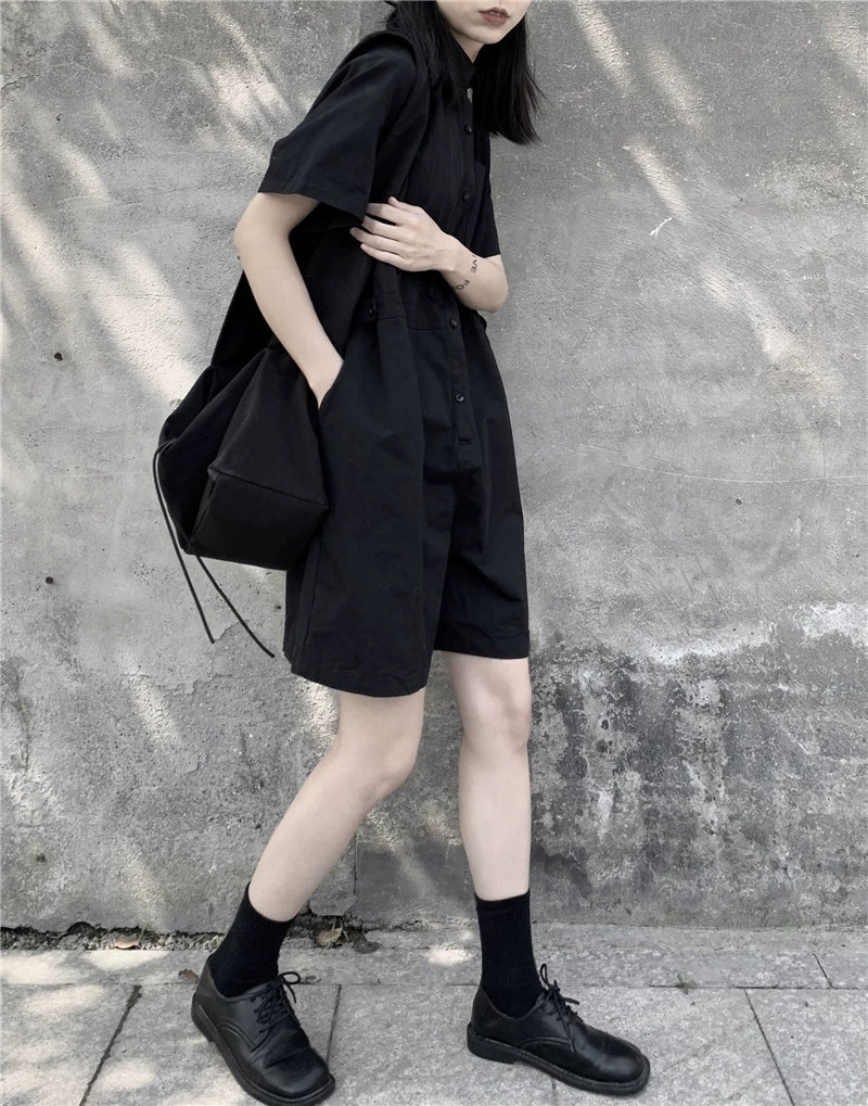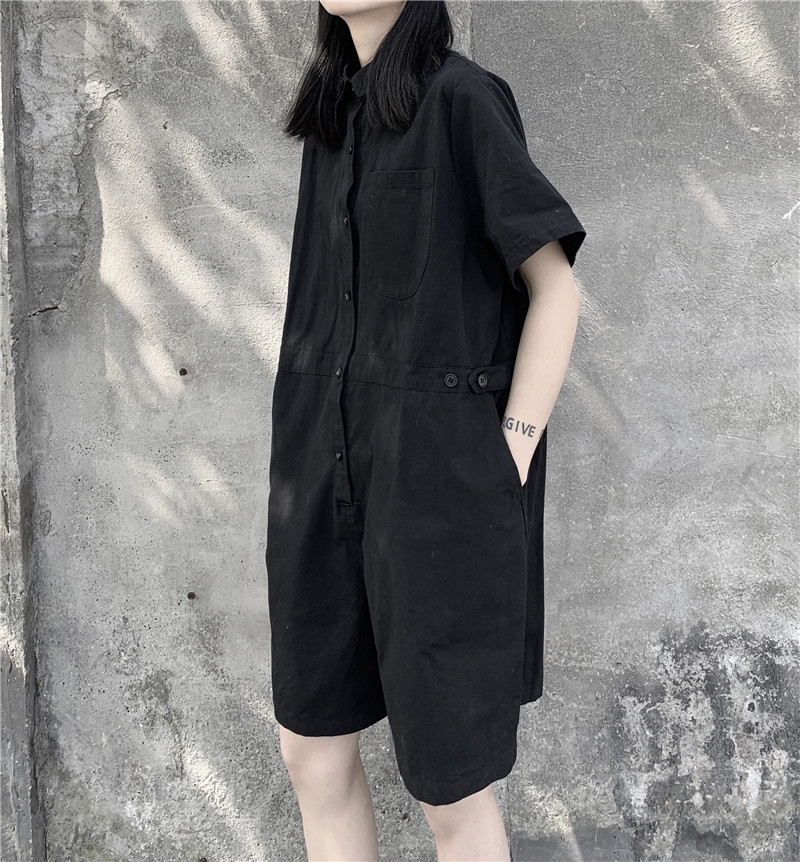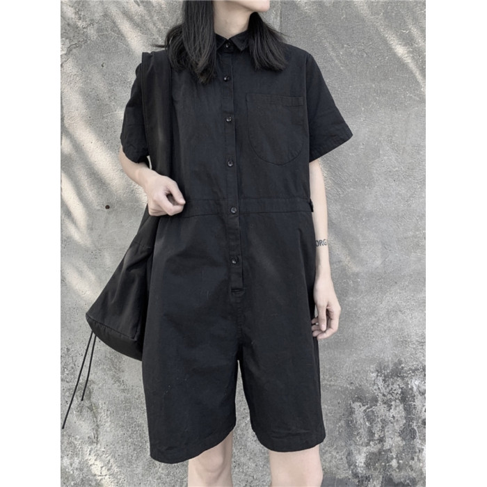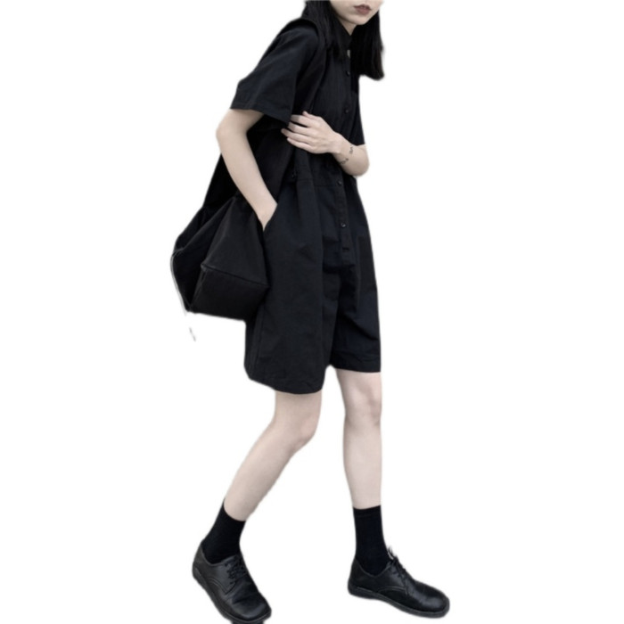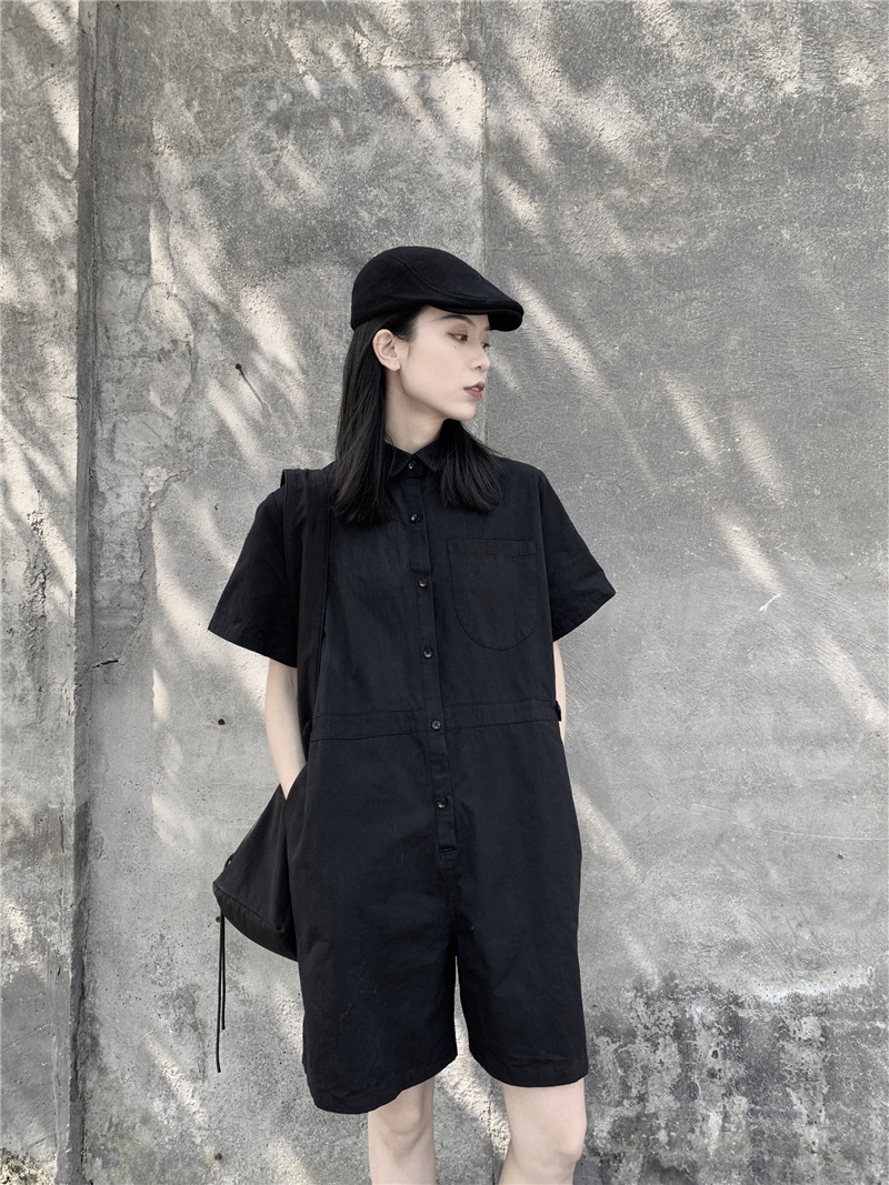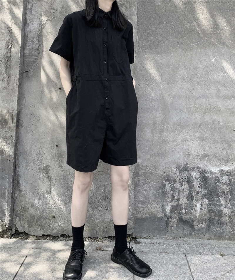 暗黑山本工裝設計感休閒連體短褲女男寬松顯瘦夏新款連體衣五分褲