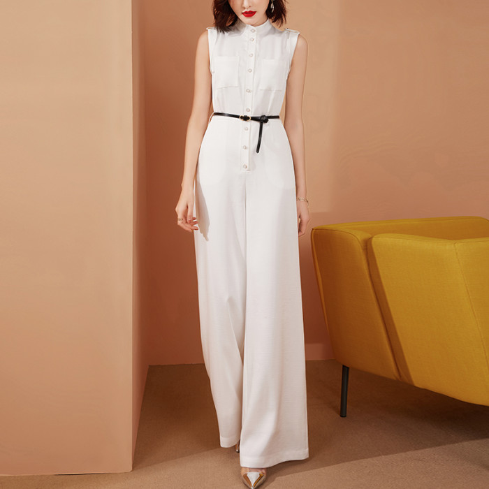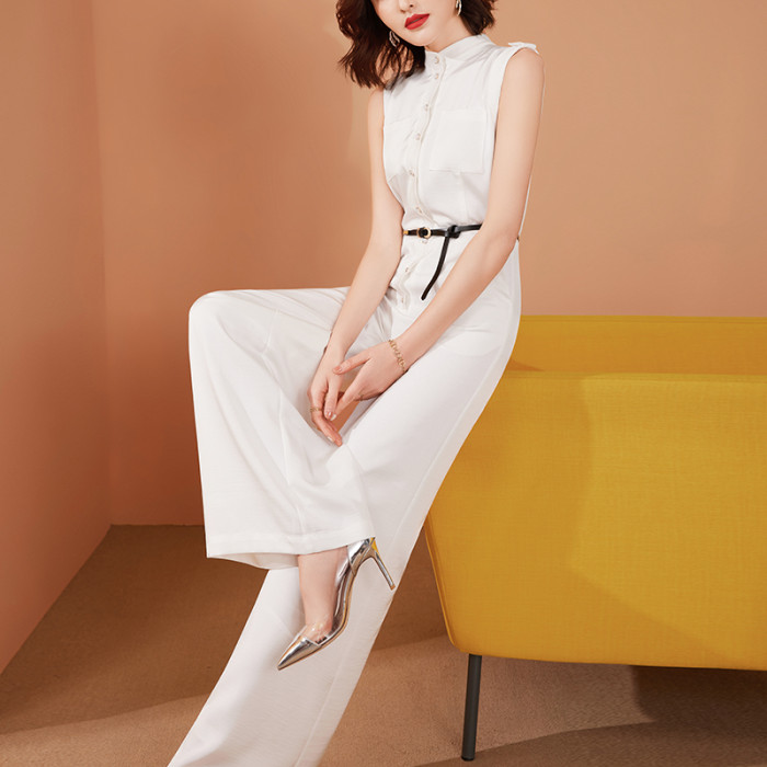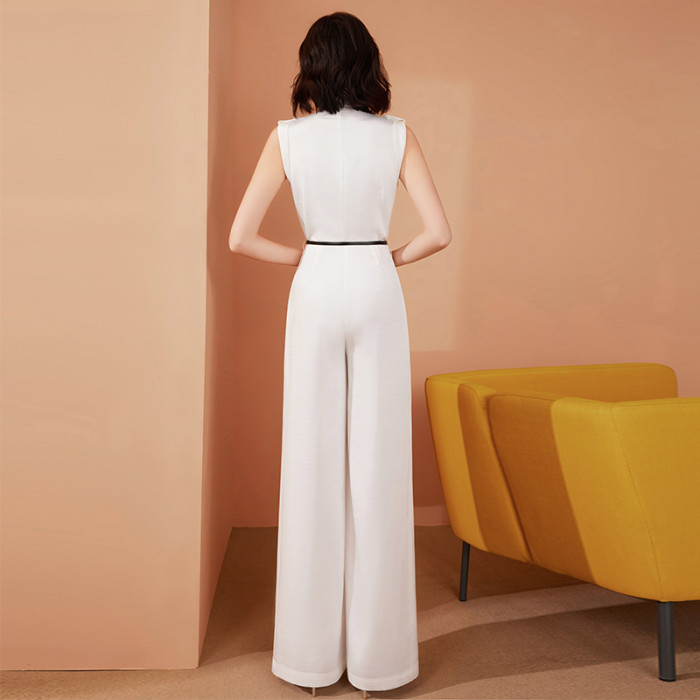 美妃雅白色高級感連體褲秋女濶腿褲長褲2025春秋新款氣質連體衣服