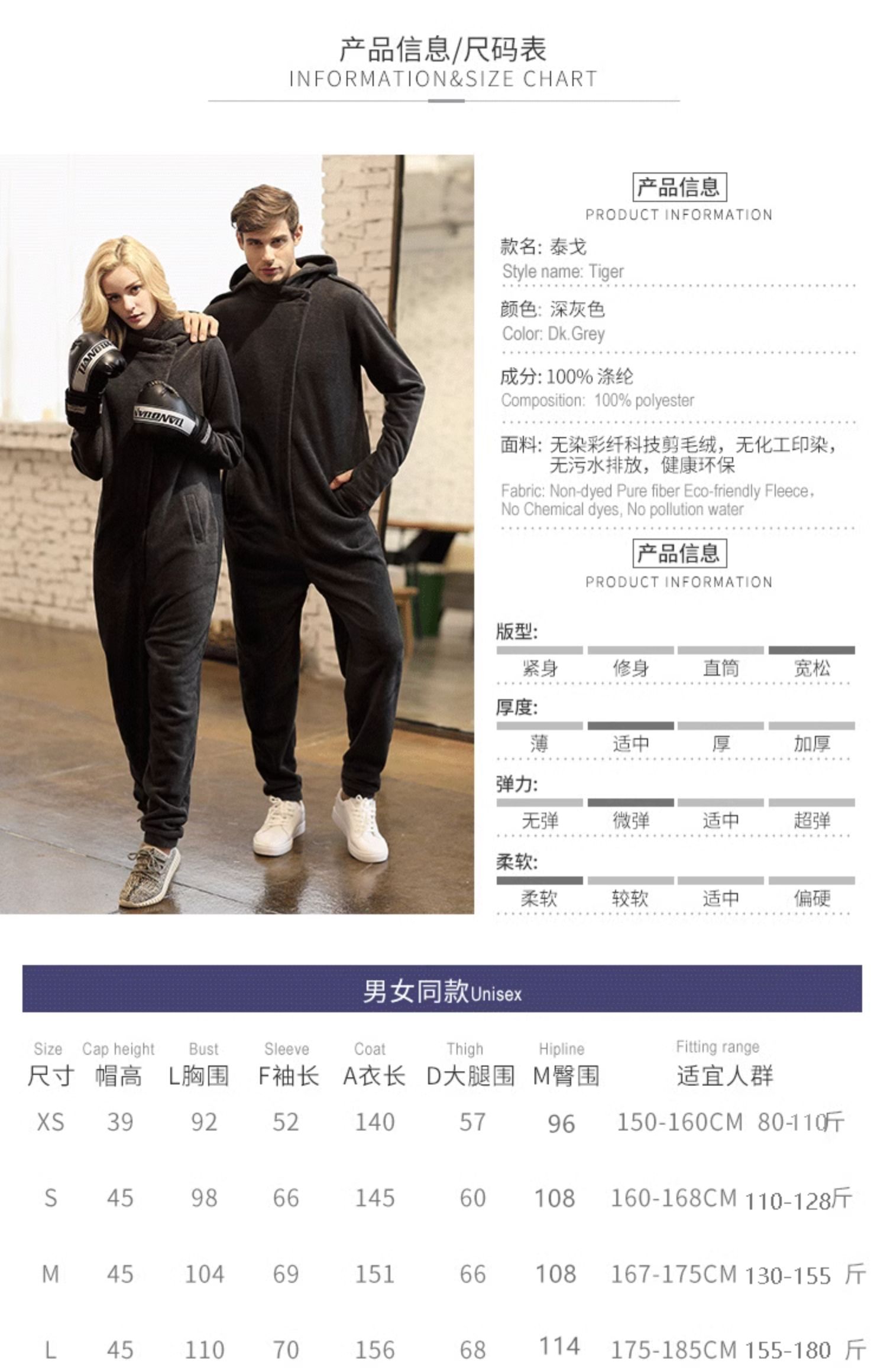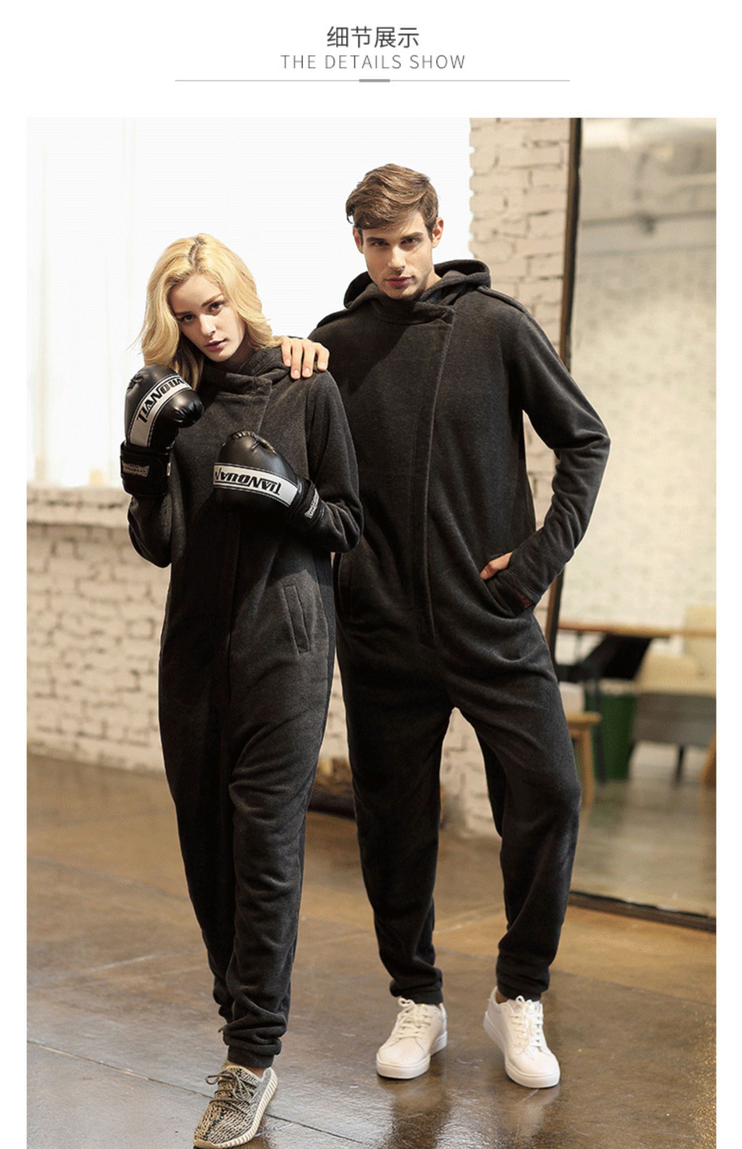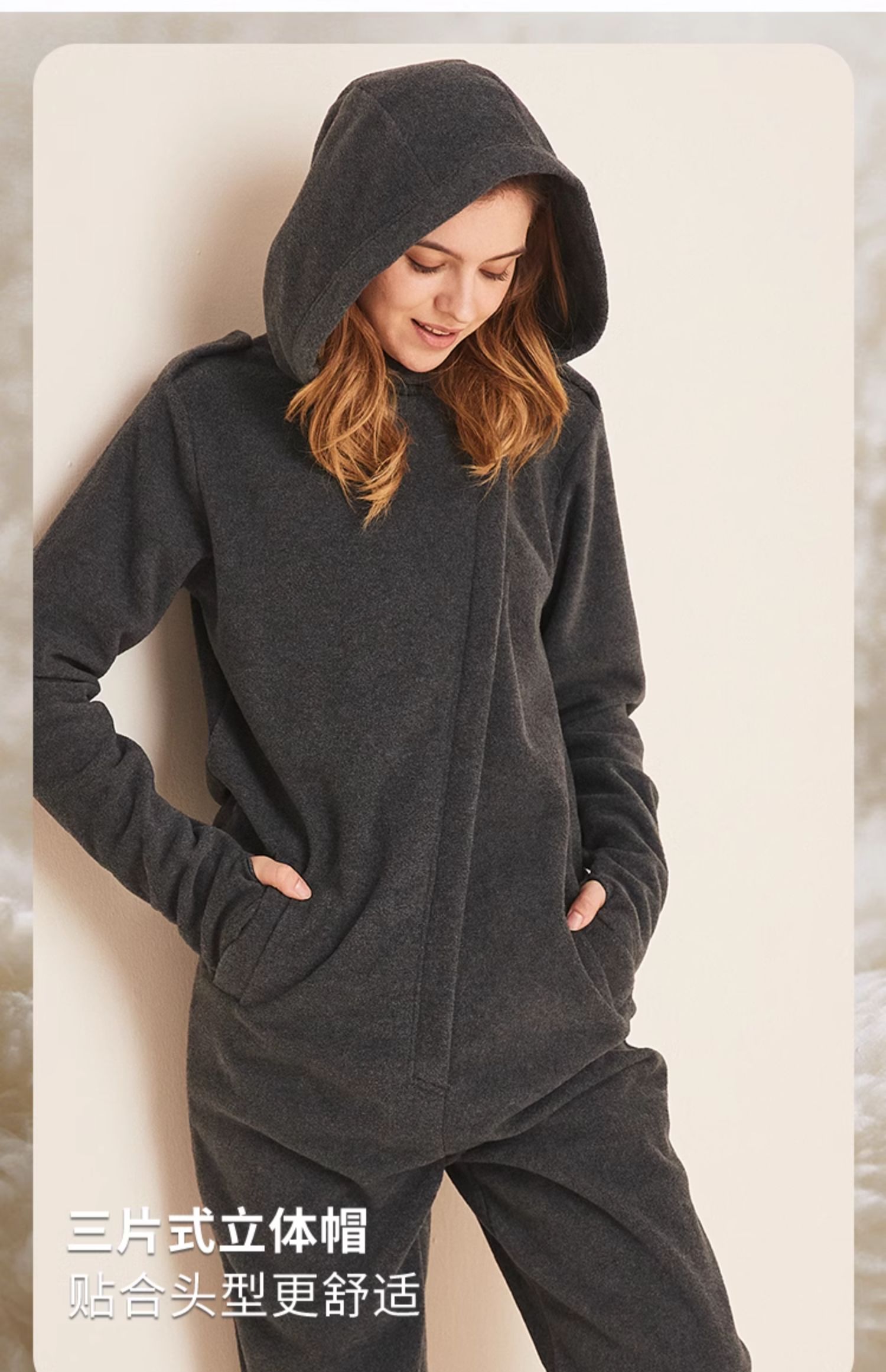 北歐連體衣男女情侶秋冬連帽連衣褲運動服寬松家居服連體睡衣一體