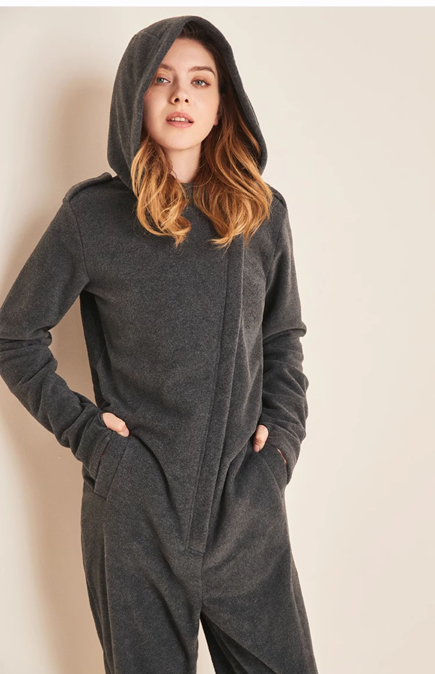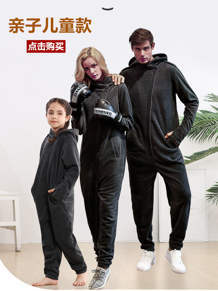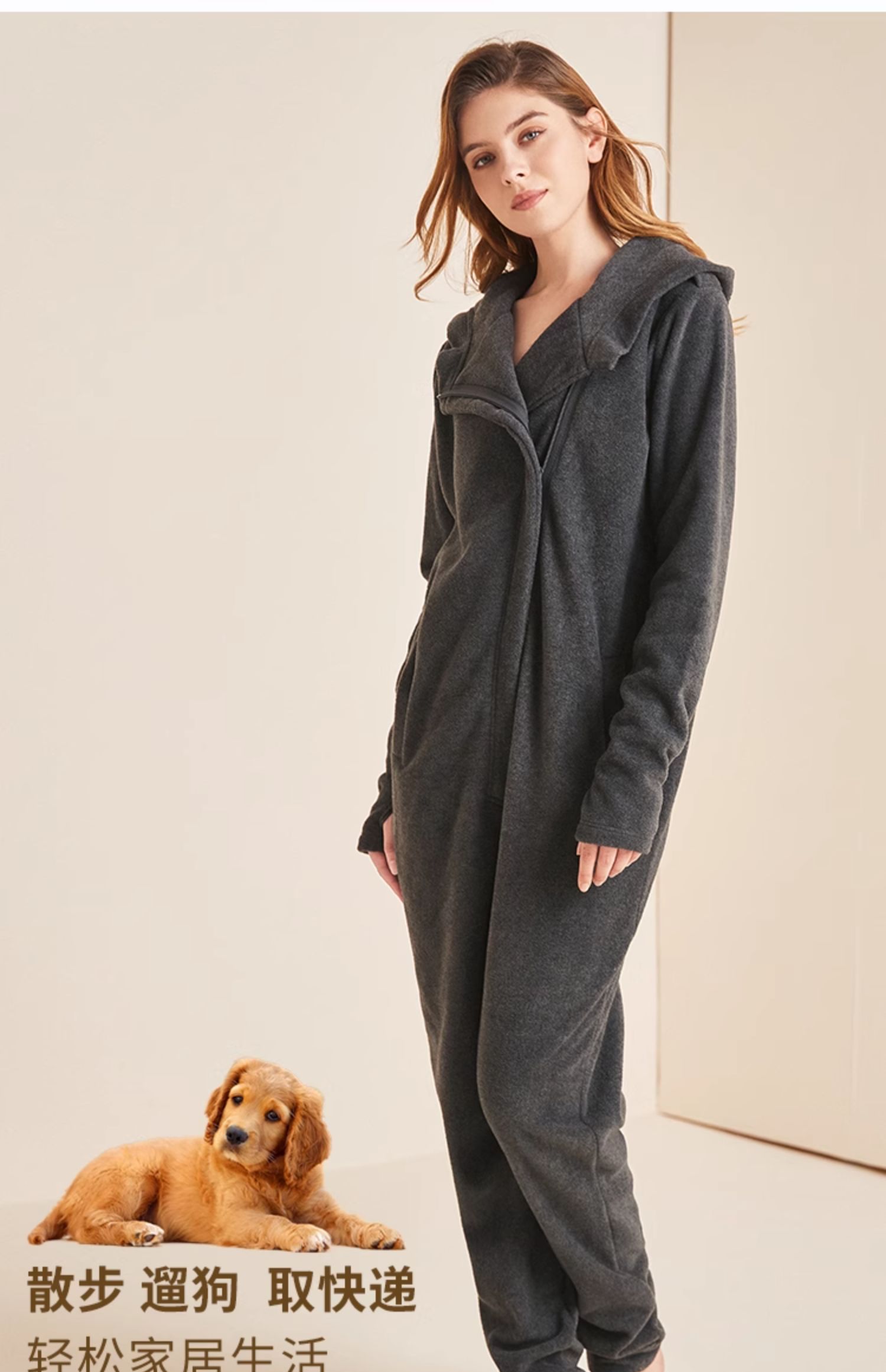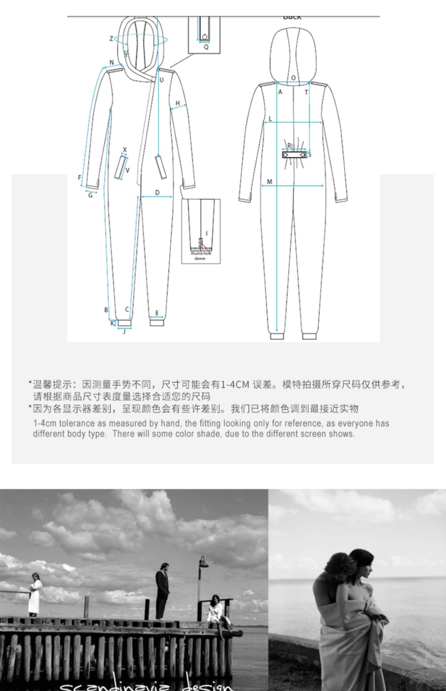 北歐連體衣男女情侶秋冬連帽連衣褲運動服寬松家居服連體睡衣一體
