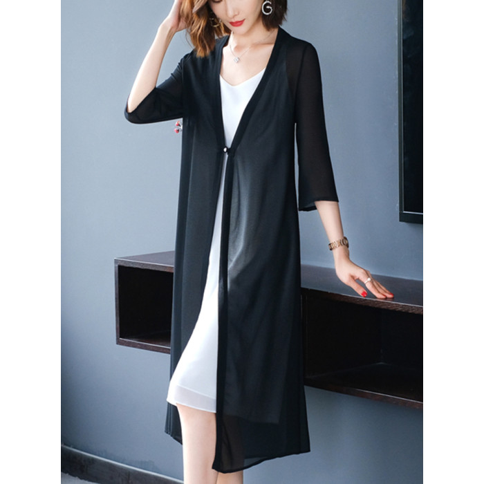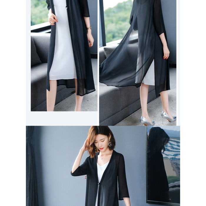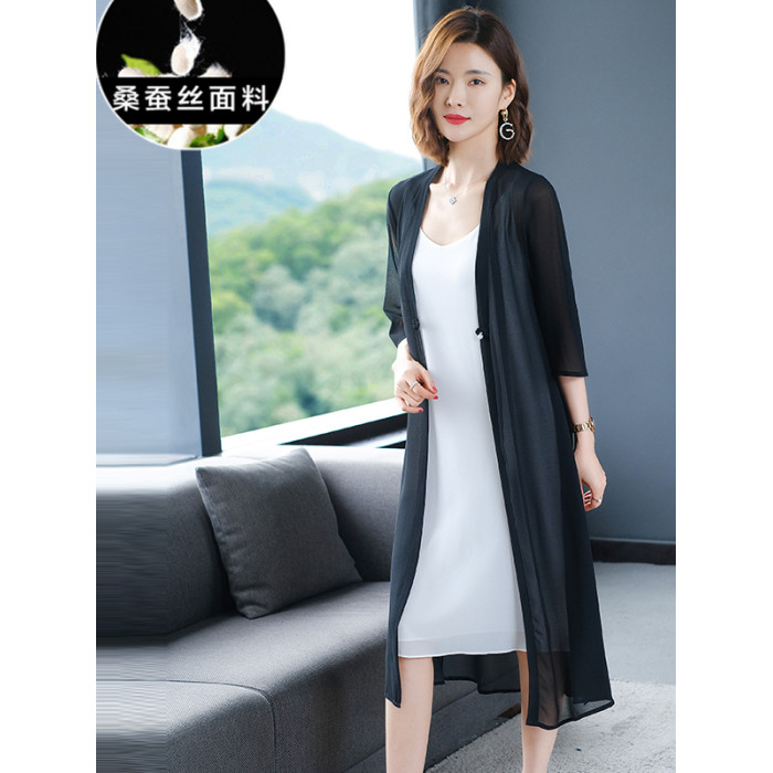 真絲外搭開衫防曬衣女夏薄款旗袍披肩外套中長款高級外披長披風