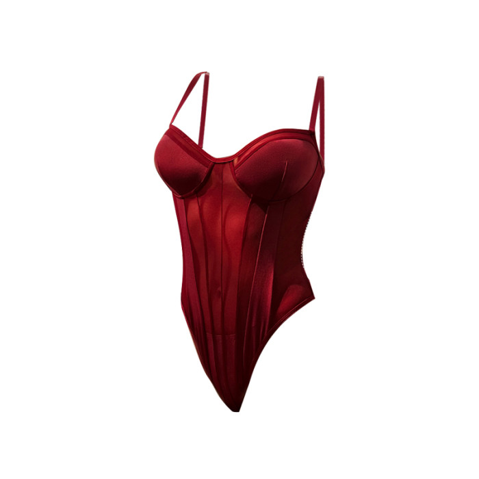 吊帶背心女內搭春夏季外穿歐美性感修身酒紅色辣妹蕾絲魚骨連體衣