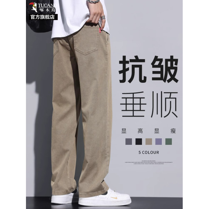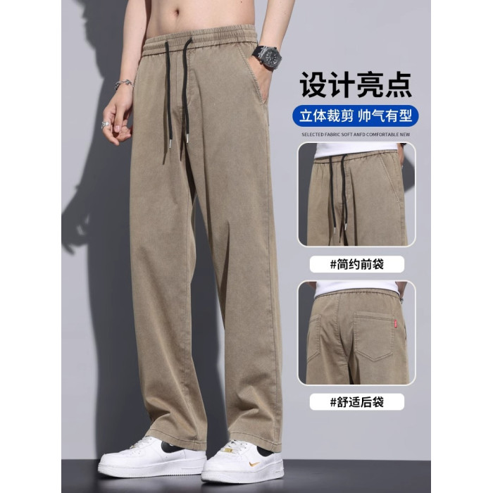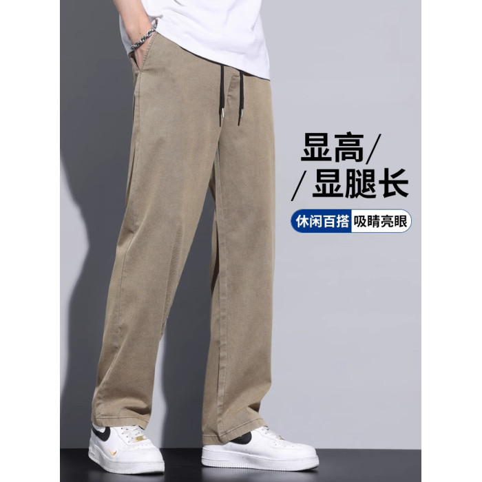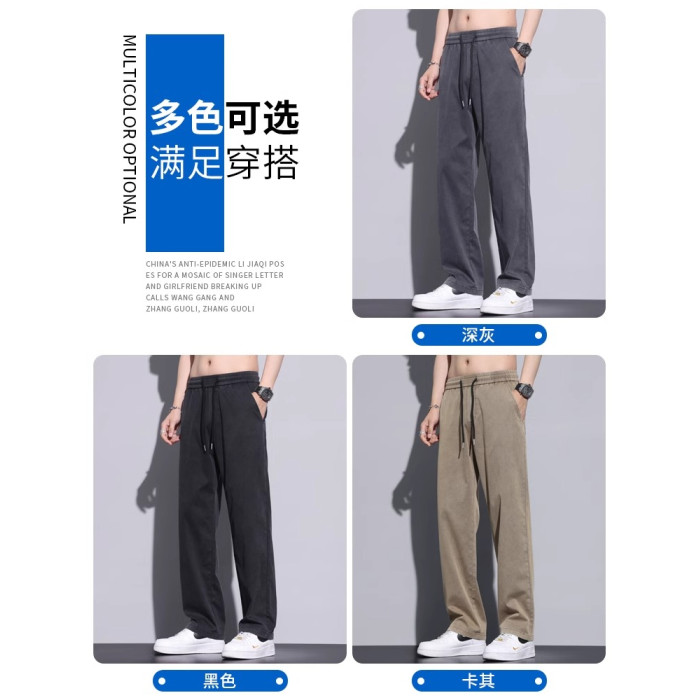 啄木鳥垂感冰絲休閒褲男夏季薄款2025新款寬松直筒運動濶腿褲子K