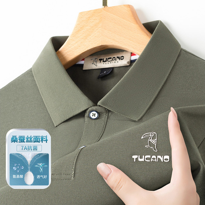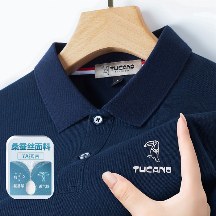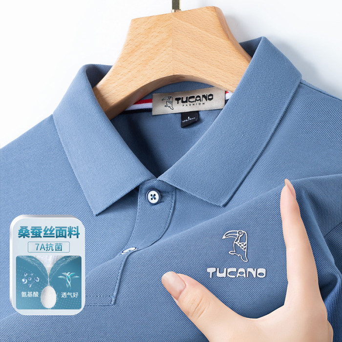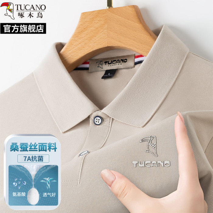 啄木鳥7A抗菌桑蠶絲短袖T恤男夏季冰絲涼感中青年商務翻領POLO衫H
