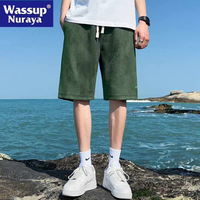 WASSUP NURAYA麂皮絨短褲男夏季潮牌美式薄款寬松運動休閒五分褲
