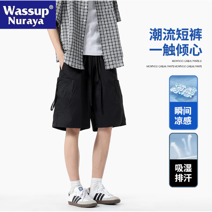 WASSUP NURAYA冰絲男短褲夏季2025新款寬松運動工裝大口袋休閒褲