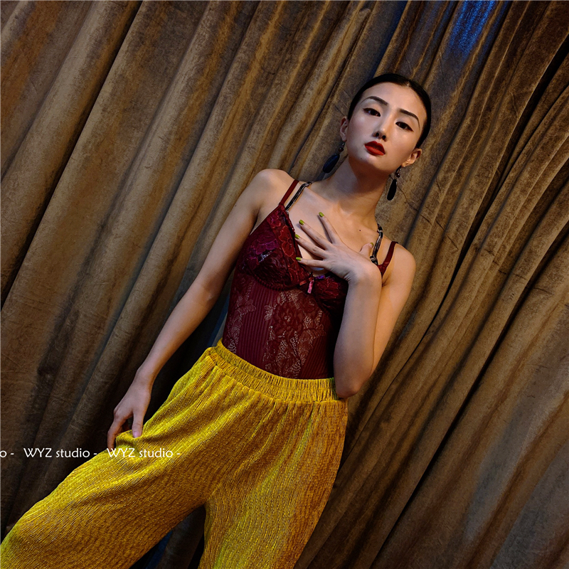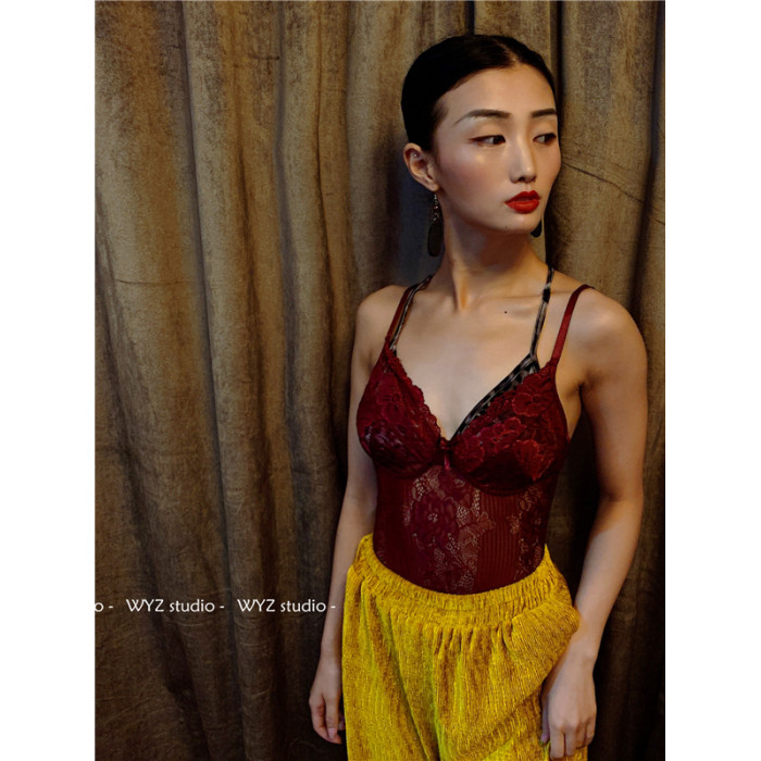 酒紅色連襠蕾絲 不含內衣