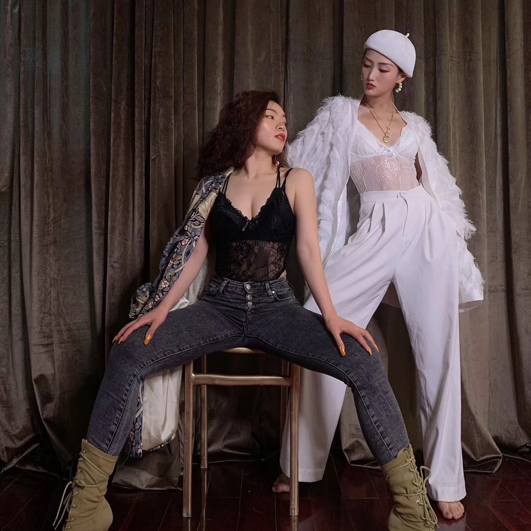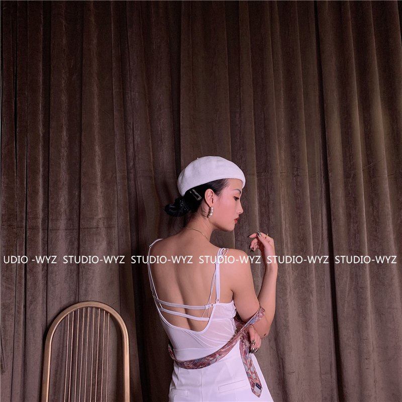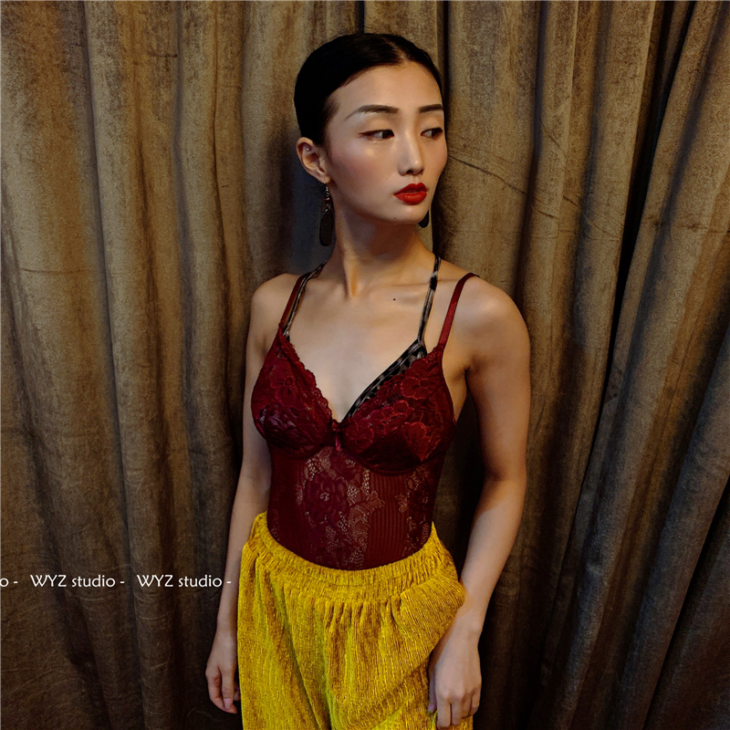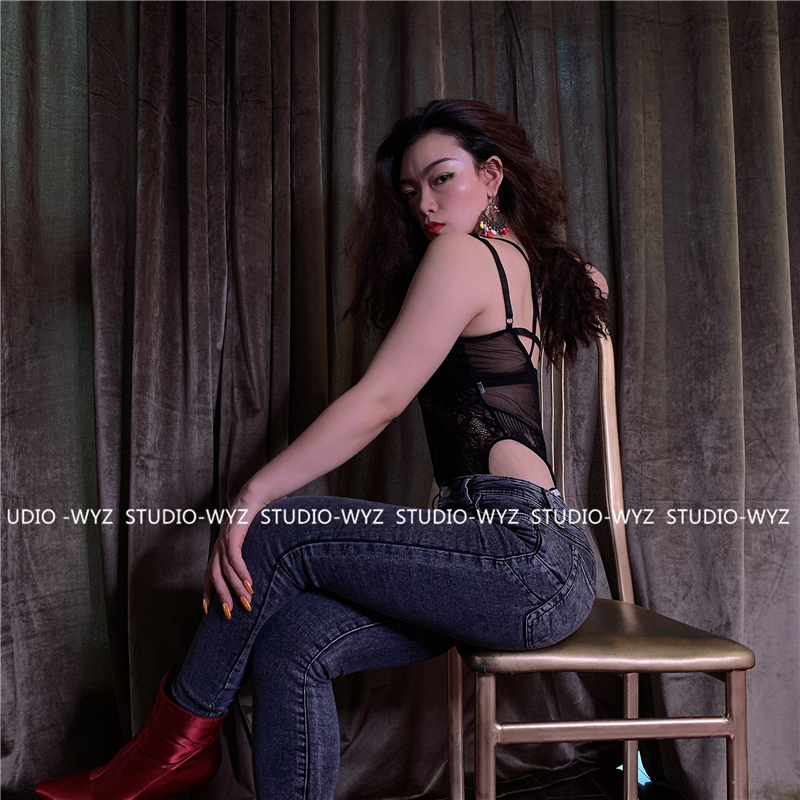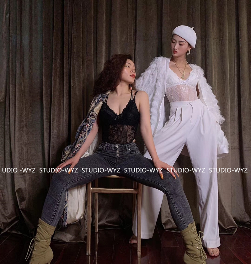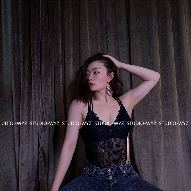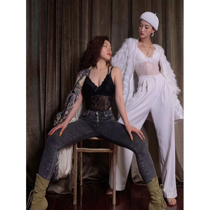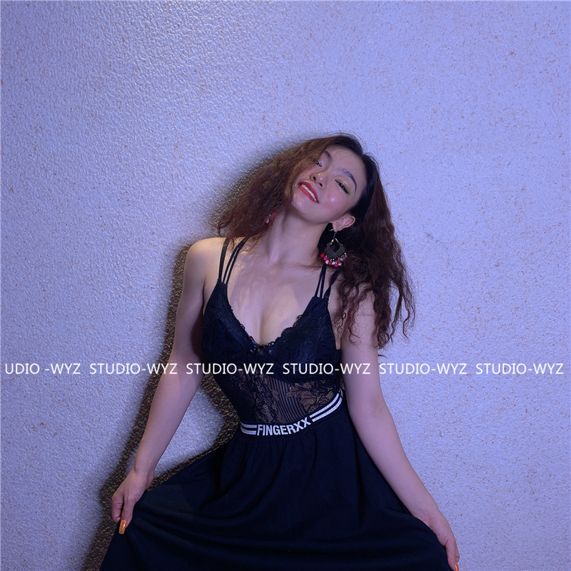 WYZ蕾絲連體衣歐美風時尚氣質連體衣黑白經典性感蕾絲吊帶背心