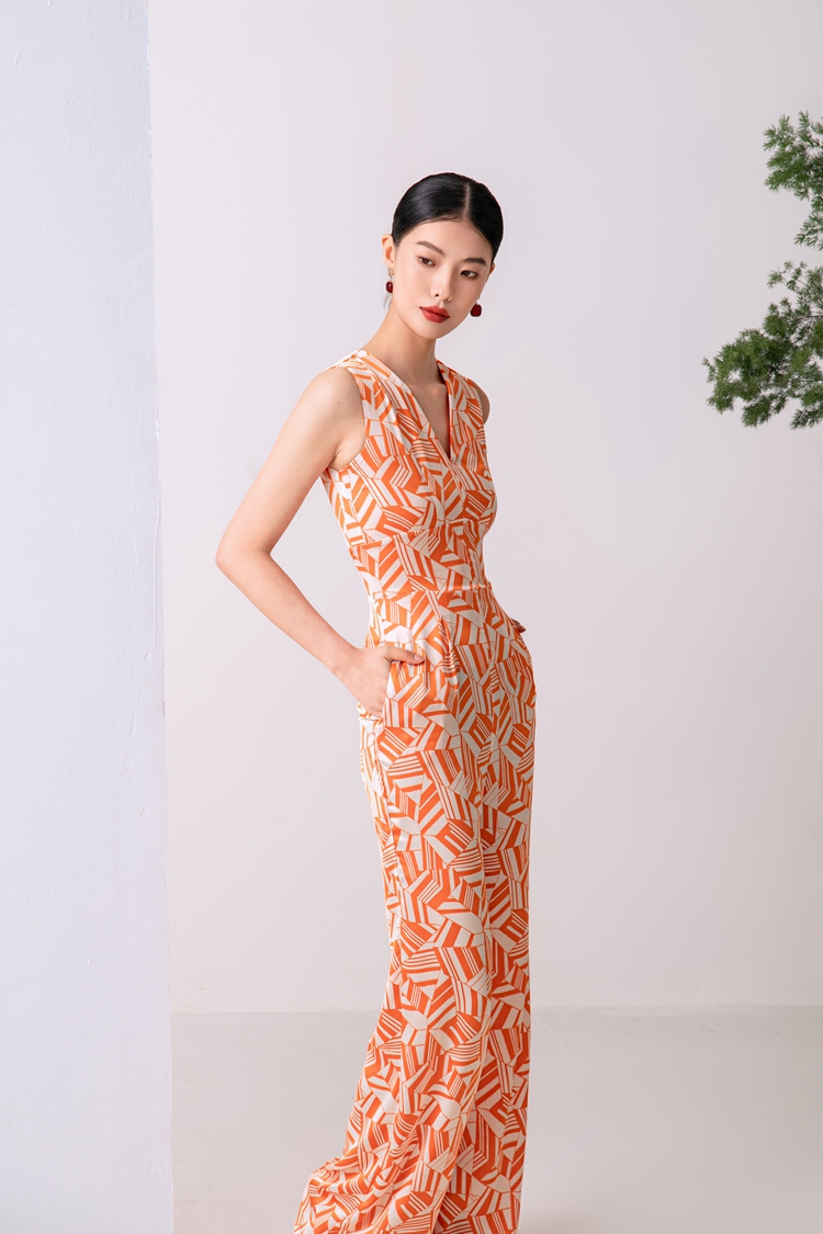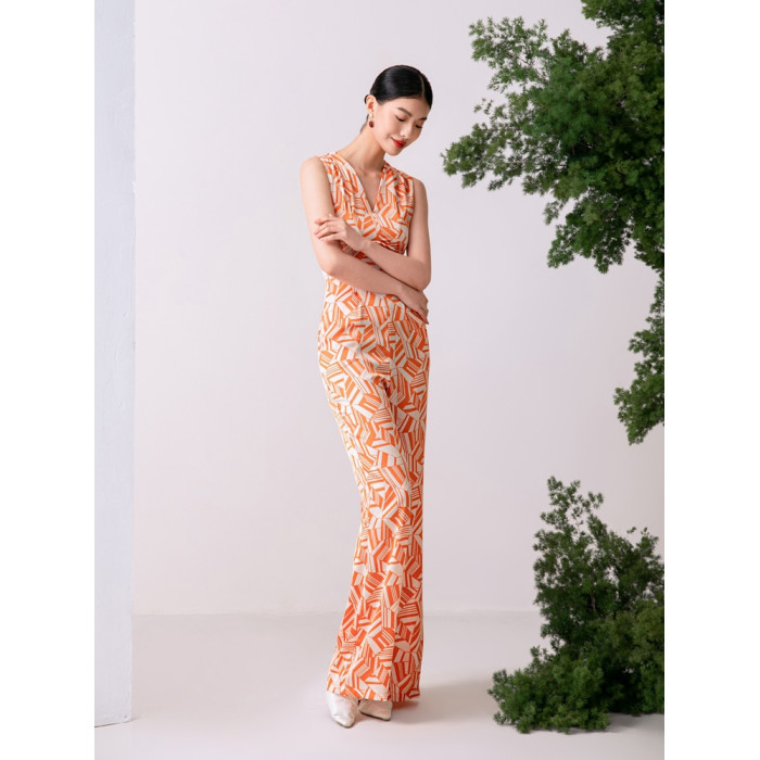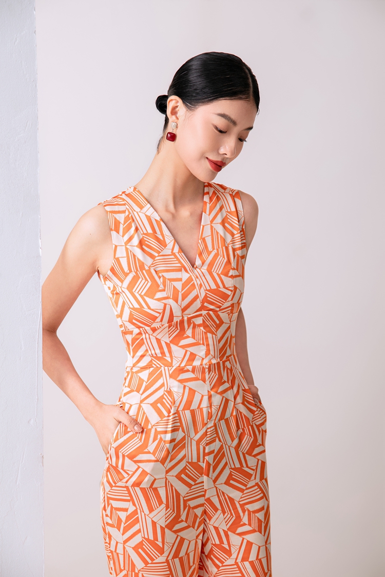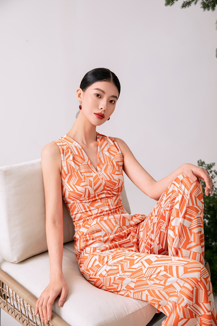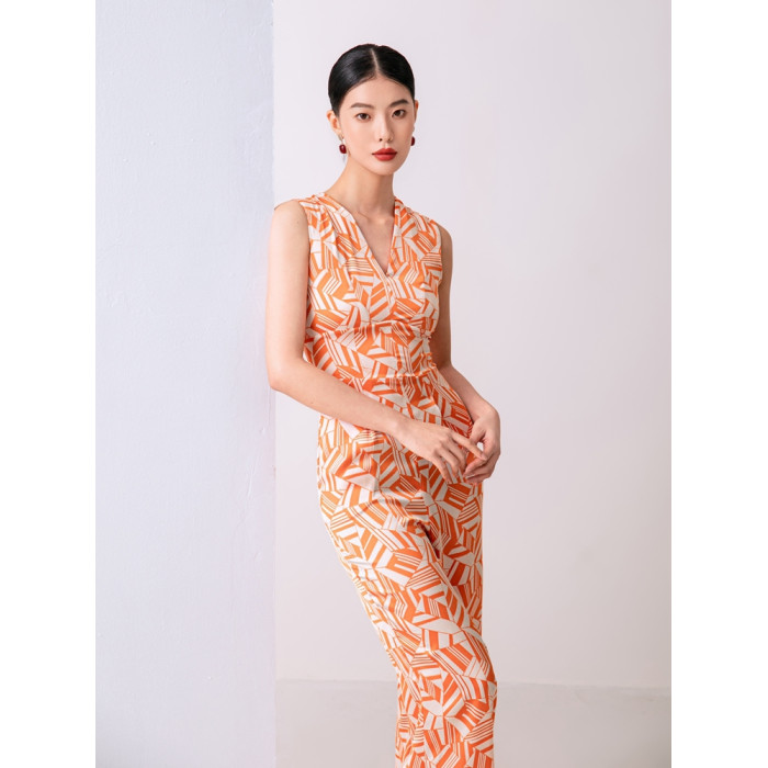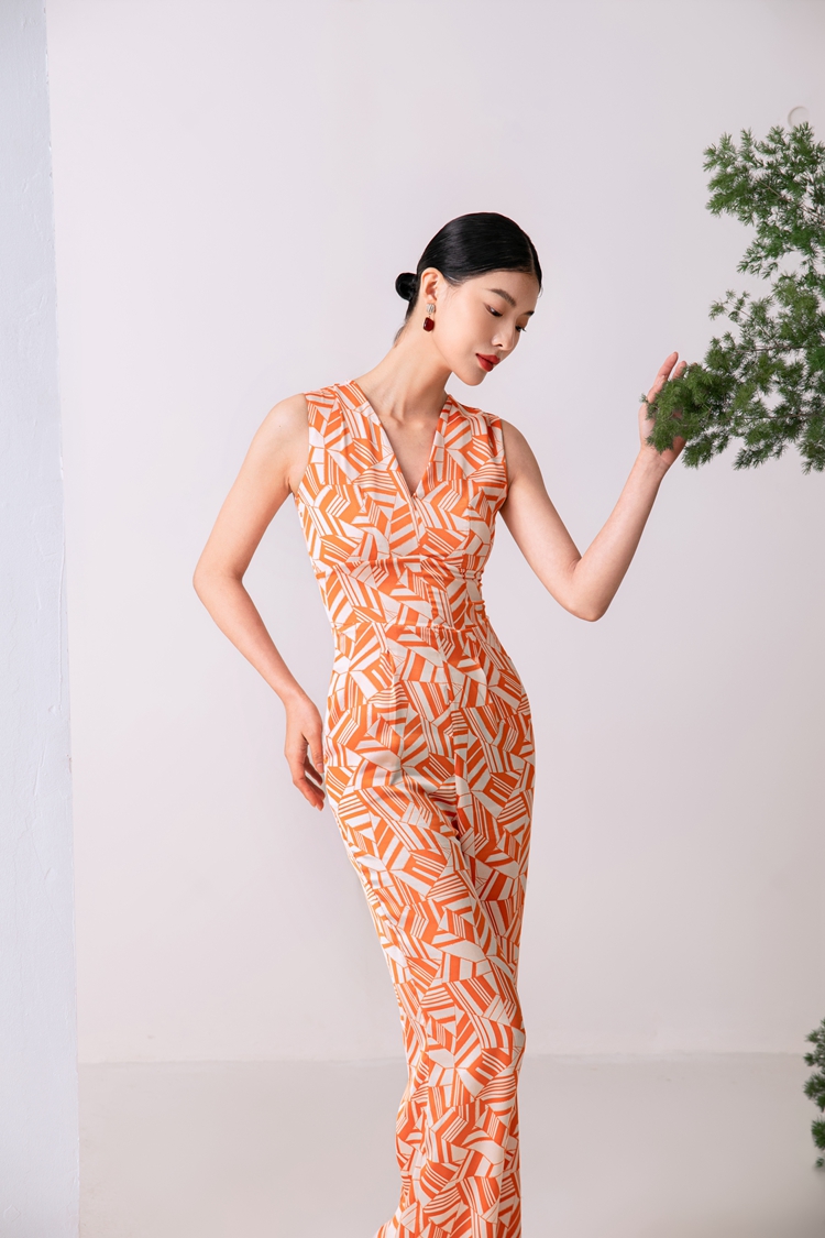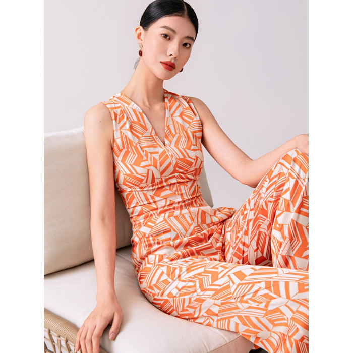 2023夏新款高級感時尚修身無袖V領中高腰濶腿褲連體衣顯瘦直筒褲