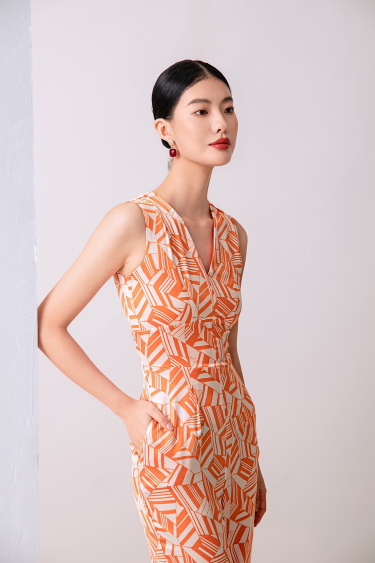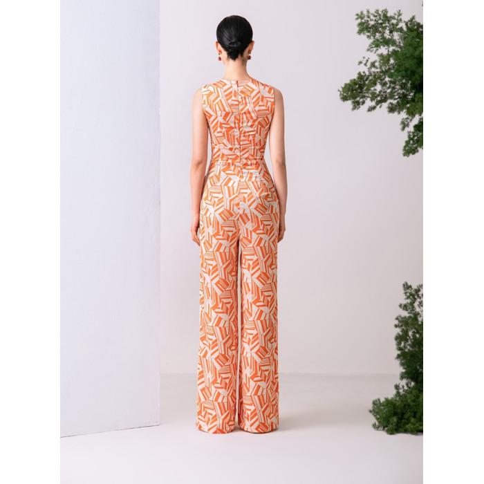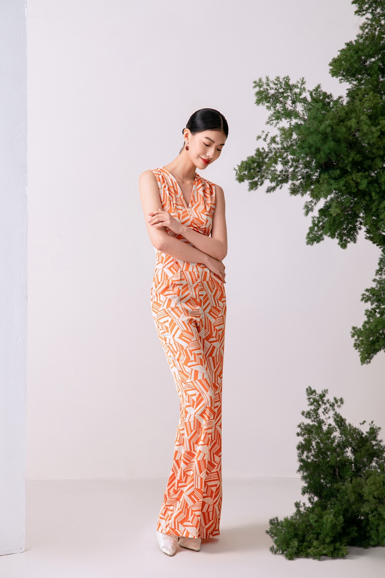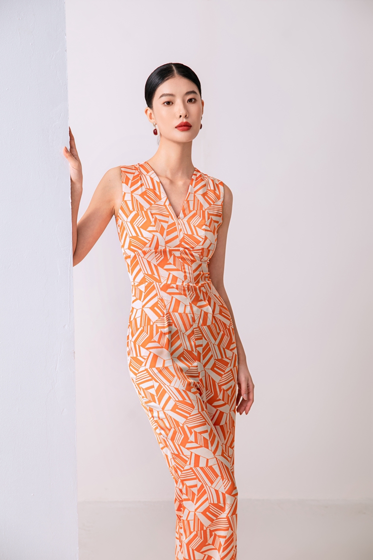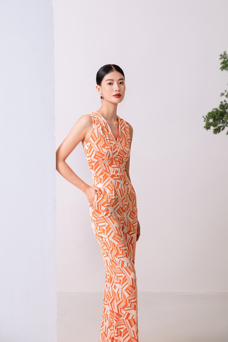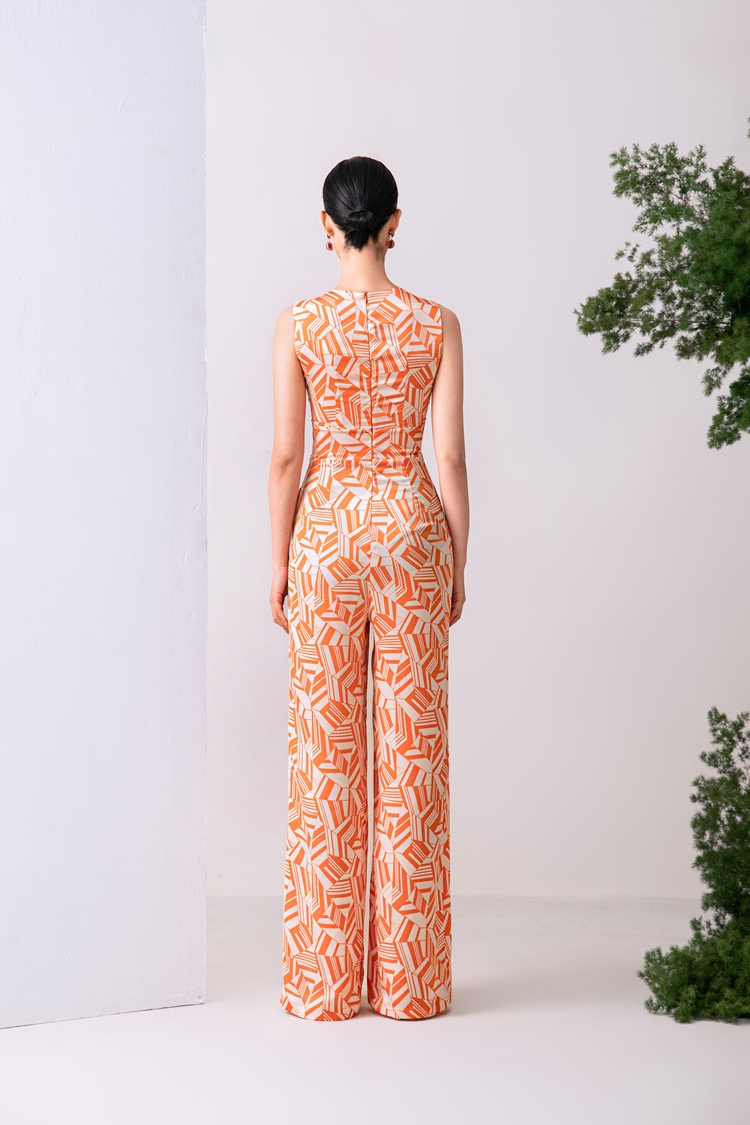 2023夏新款高級感時尚修身無袖V領中高腰濶腿褲連體衣顯瘦直筒褲
