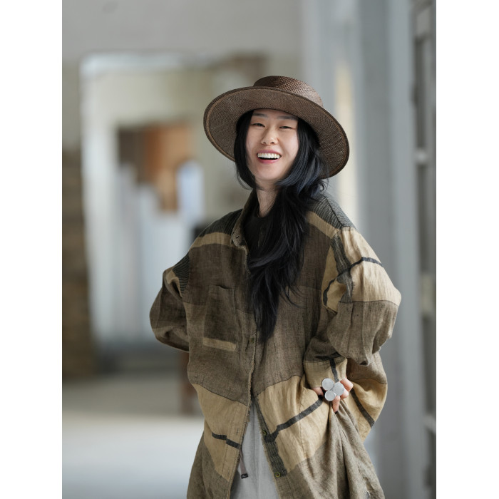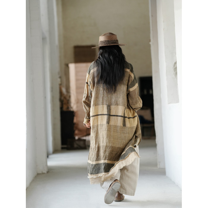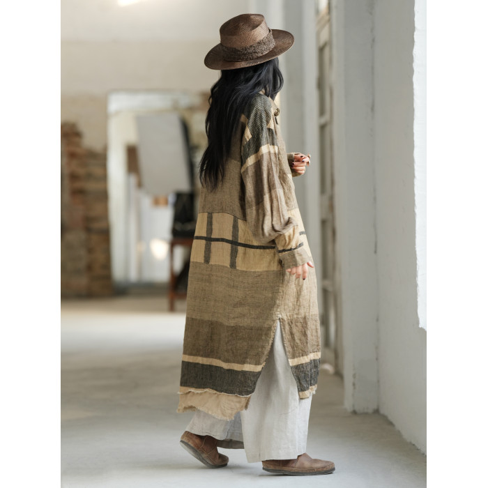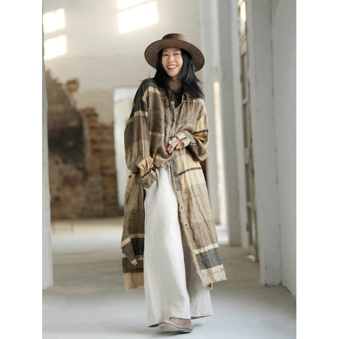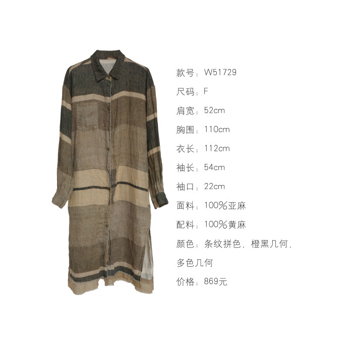 幾見 原創設計春秋亞麻長襯衫休閒連體衣長袍長袖撞色復古W51729